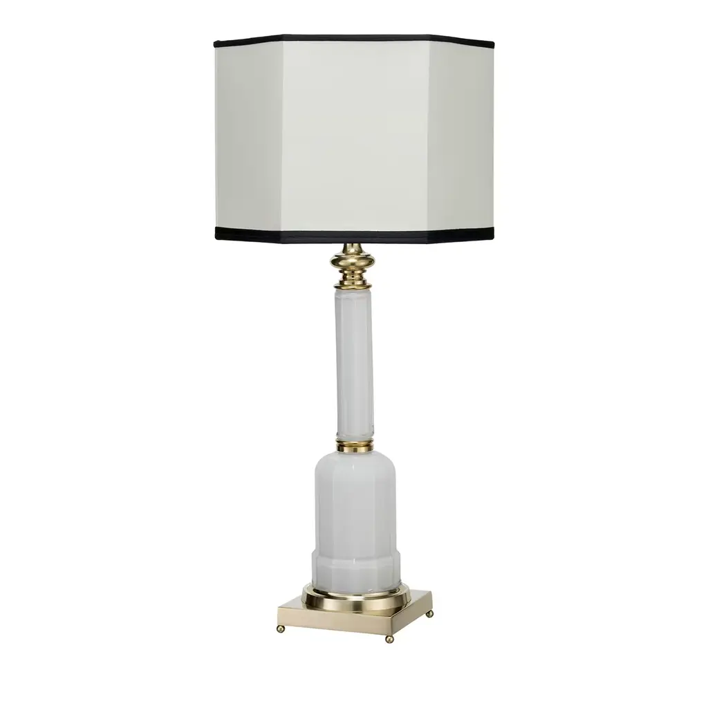 The Petrol Green Jacaranda Table Lamp is made of blown glass with brass details and a base and fabric lampshade. The glass structure is obtained with the artisan technique of glass blowing inside a mold, usually of wood or carved metal, in this way, the shape and texture of the glass bubble are determined by the design inside it. The brass inserts in the natural finish are added later as well as the base with the spherical feet. Please, ask the Concierge for further details.