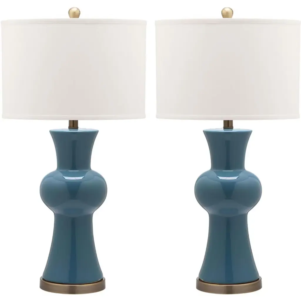 2 Pack-Table Lamp, Navy Blu Ceramic/White Linen, E27 A 60Wx2