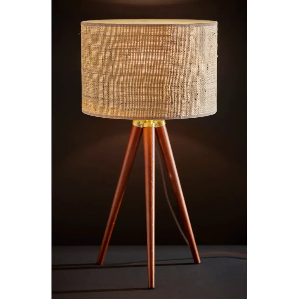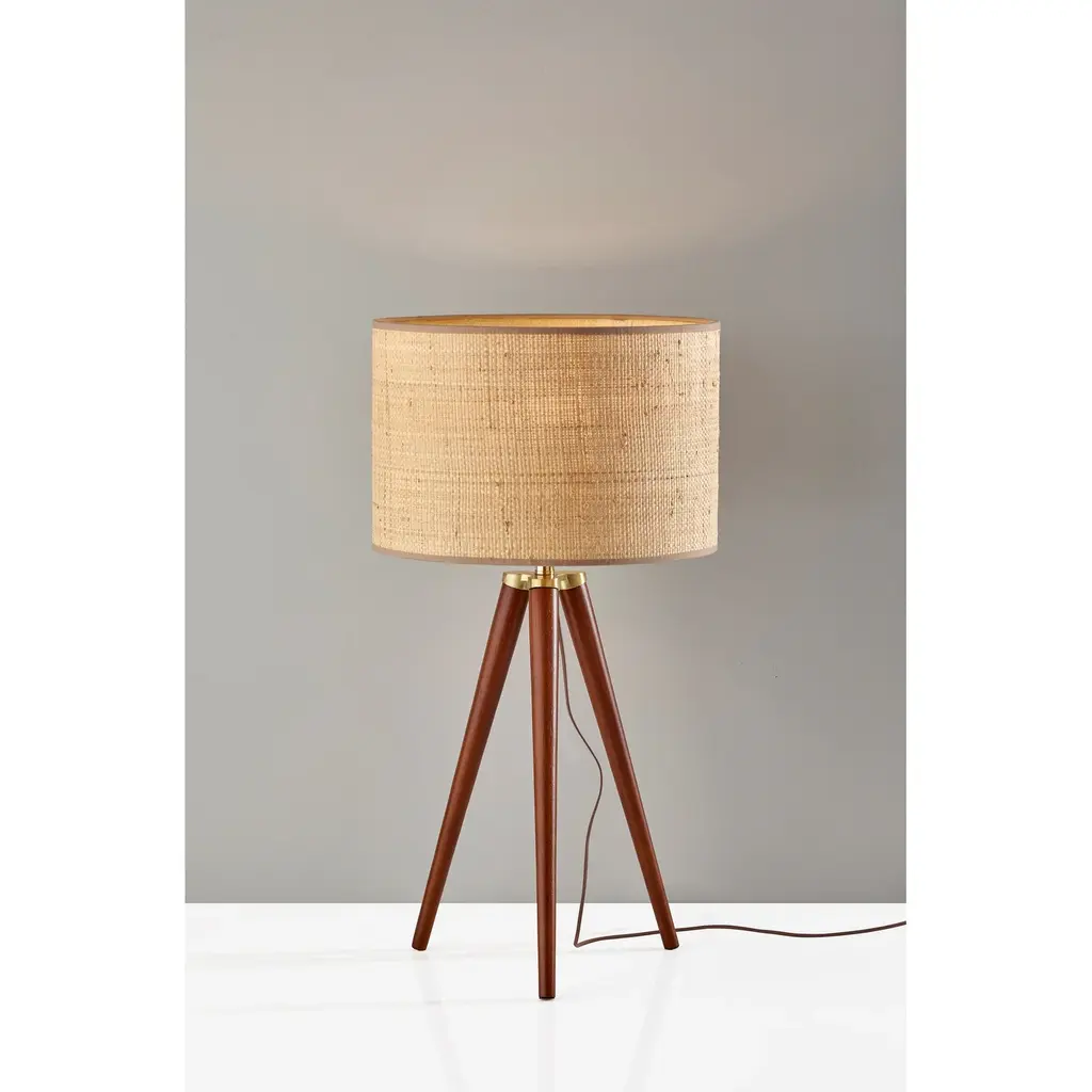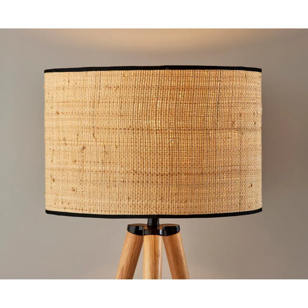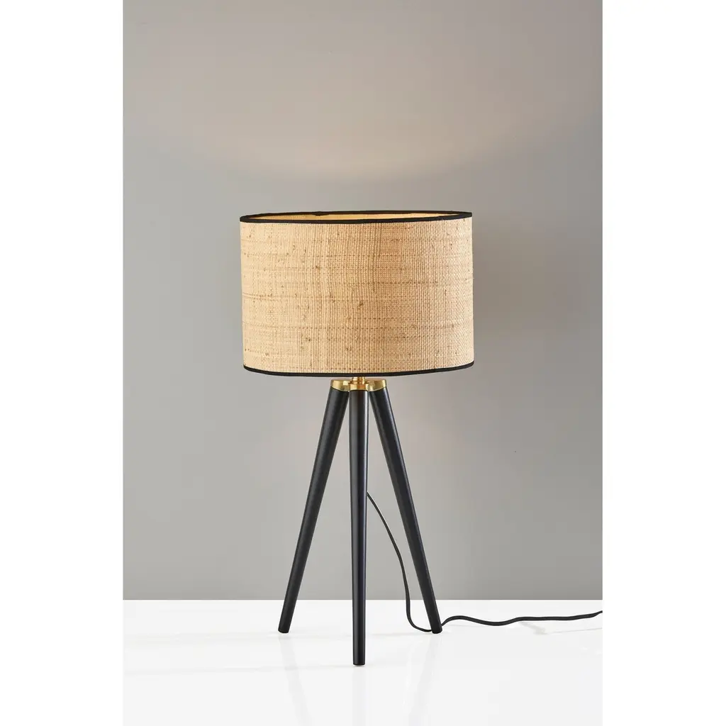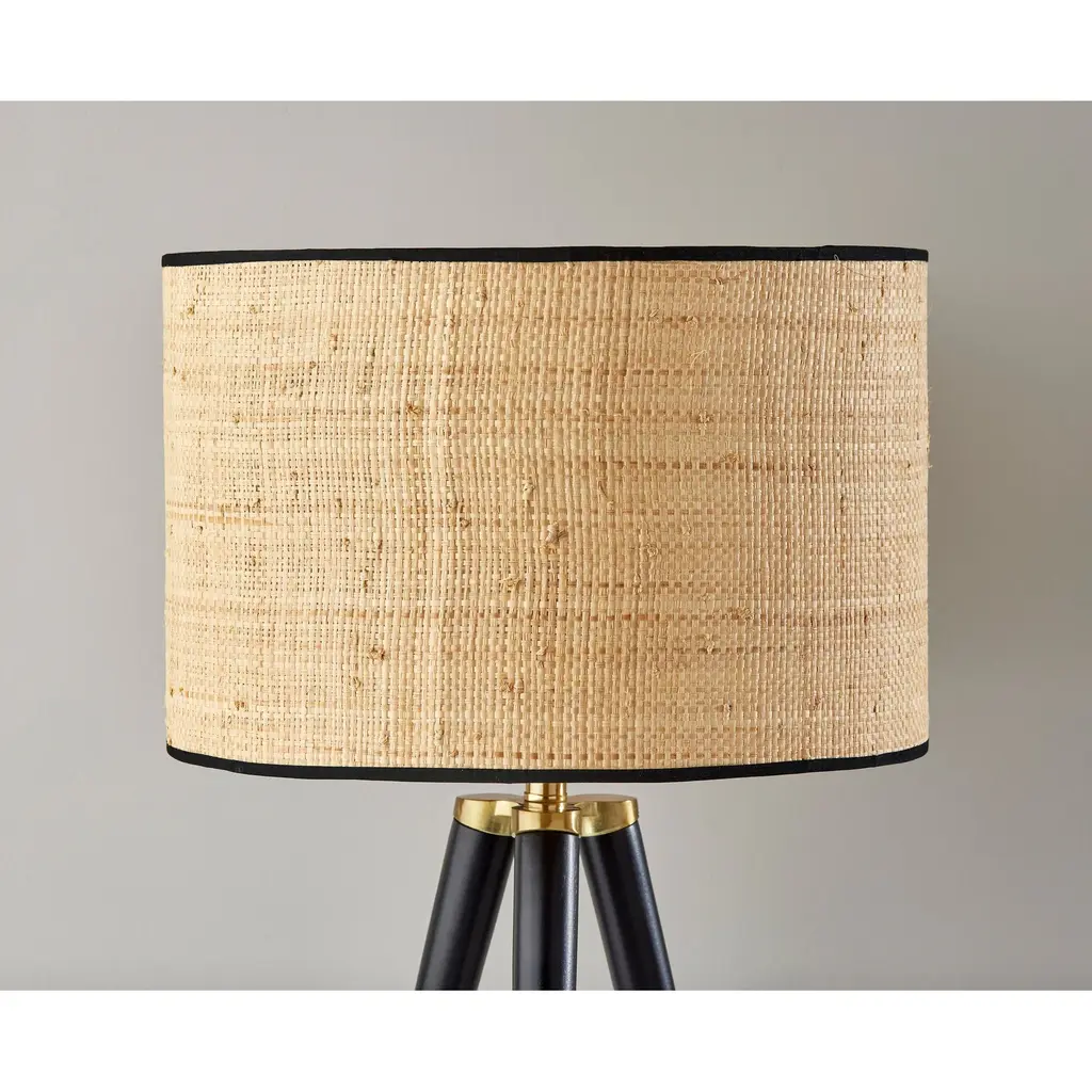 The Jackson table lamp adds natural elements to the contemporary tripod design for a stunning complement to any décor. The black wood tripod base is sturdy and stylish and features antique brass detailing. Topping the lamp is a short natural rattan drum shade that highlights the texturing of the material as it disperses the light from a 100W bulb. The lamp shade is also trimmed with black fabric along the top and bottom to match the black base. A 3-way rotary socket switch provides a variety of lighting options, allowing you to easily adjust the brightness between low, medium, and high, while the lamp is powered by a 5' cord covered in black fabric. The Jackson table lamp is also available with natural wood to complement farmhouse style or a walnut finish for a traditional feel. Complete your décor with the coordinating Jackson floor lamp.