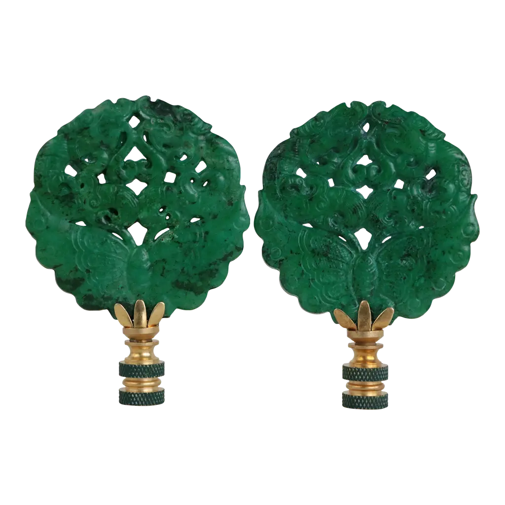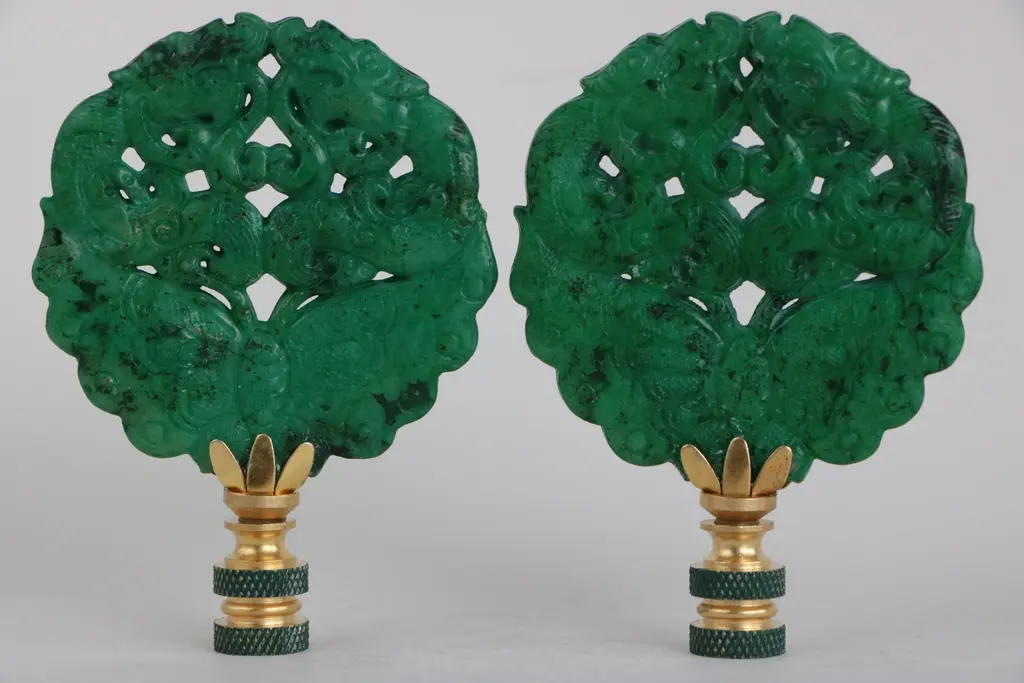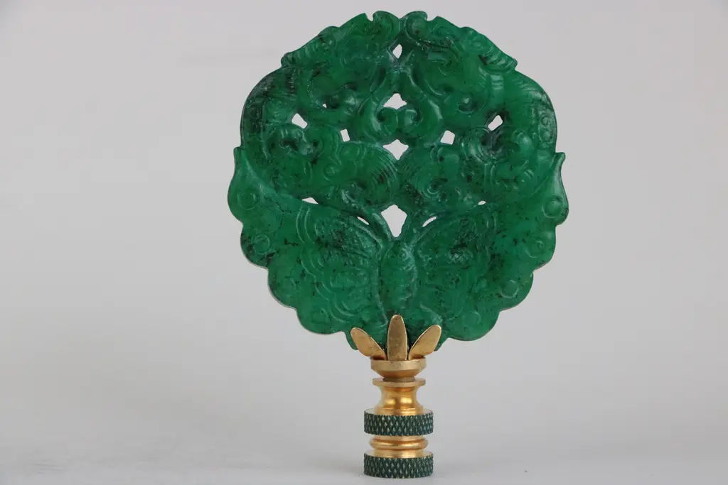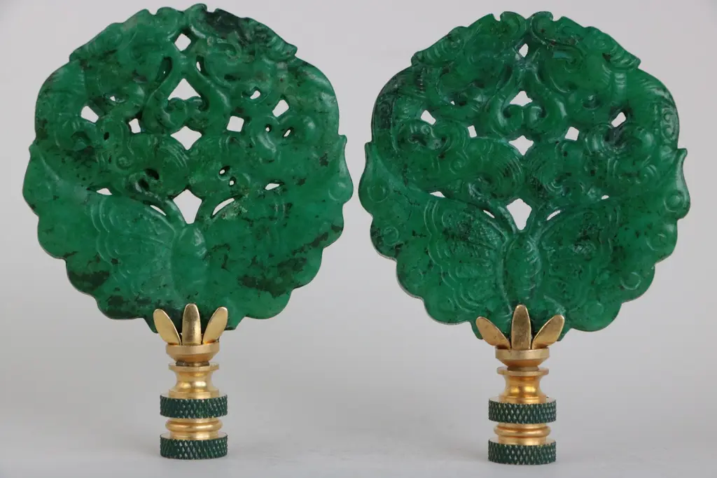 Upgrade your existing lighting or add a distinctive finishing touch to any table lamp with these designer lamp finials. These finials are the perfect accent for Asian décor atop an elegant pair of matching Chinese ginger jar lamps. Style is in the details! Handcrafted in Wisconsin. Meticulously prong-set and fixed with jeweler's-grade adhesives. Knurled brass finial base(s) will fit a standard-size lamp harp with a 1/4" stem. Coloration may vary based on the nature of the stone material and varied light sources.