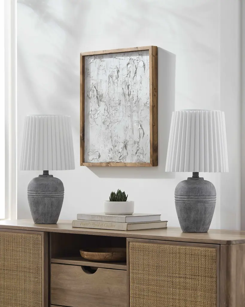 Jaltomate Gray Ribbed Table Lamp - 19"h X 9"w X 9"d