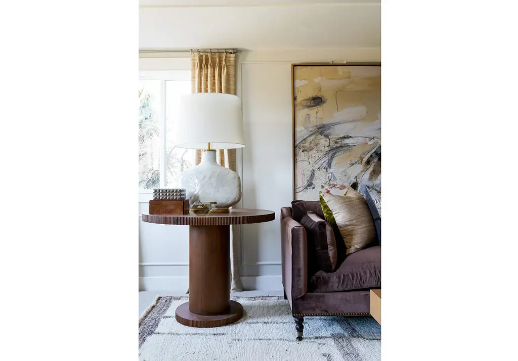 The James Table is a handsome traditional classic walnut pedestal table. Its beautiful tabletop features a remarkable reeded edge profile. James looks striking in entries as a generous side table, in living rooms, or in bedrooms paired with occasional chairs.