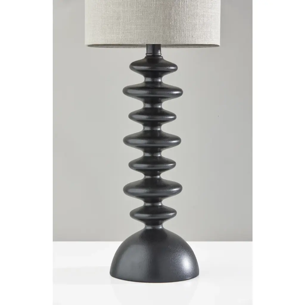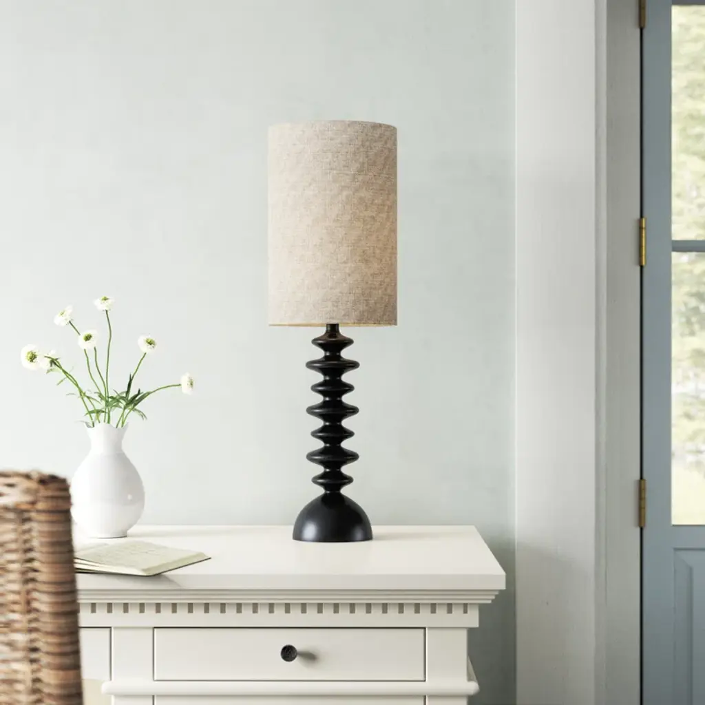 Bring a touch of modern sophistication to your home with this sleek table lamp. Featuring a black metal and resin base, it adds a bold contrast to any room. The lamp is designed for one standard A19 bulb (not included) and comes with a rotary socket switch for easy operation. Ideal for use in dry locations, it's a versatile addition to your living room, bedroom, or office. Plus, the included cord ensures you'll have no trouble finding the perfect spot to showcase this contemporary piece.