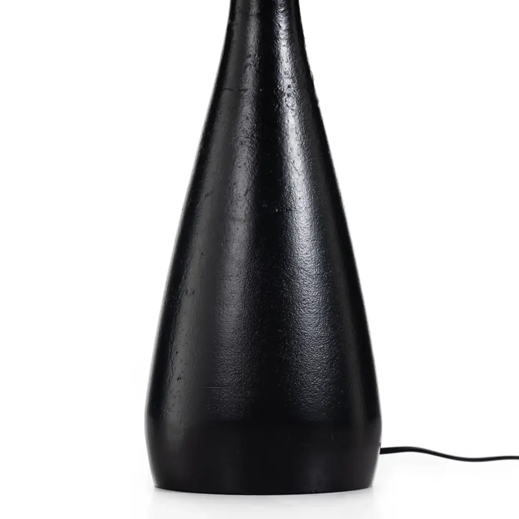 A beautifully shaped base of matte black aluminum pairs with a light beige 100% cotton shade for a striking contrast.