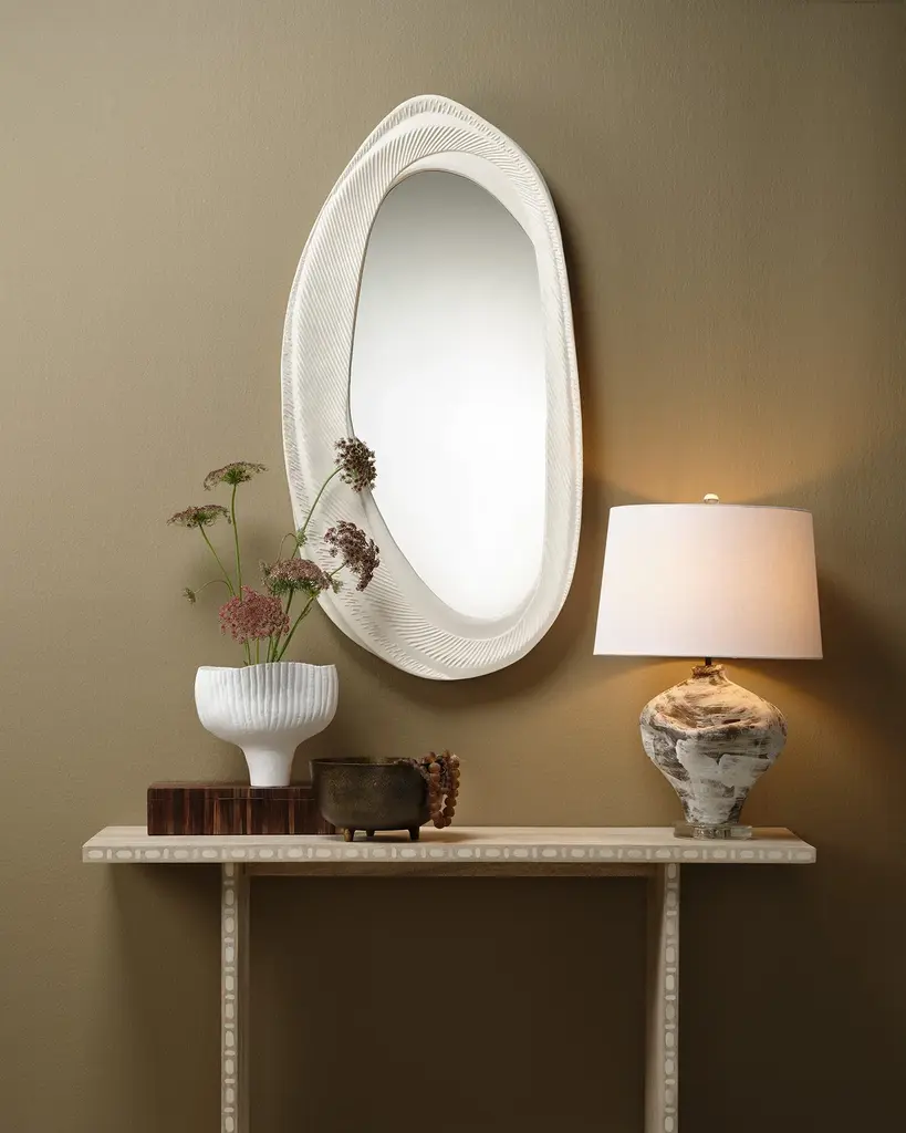 With a style influenced by the look of classic Italian antiques, this table lamp’s handcrafted ceramic base has a soft, slightly organic shape and is finished with hand-applied swirls in modern neutral tones. To further modernize the look, it is topped with a crystal-clear acrylic finial and a white linen drum shade. Handmade of Ceramic