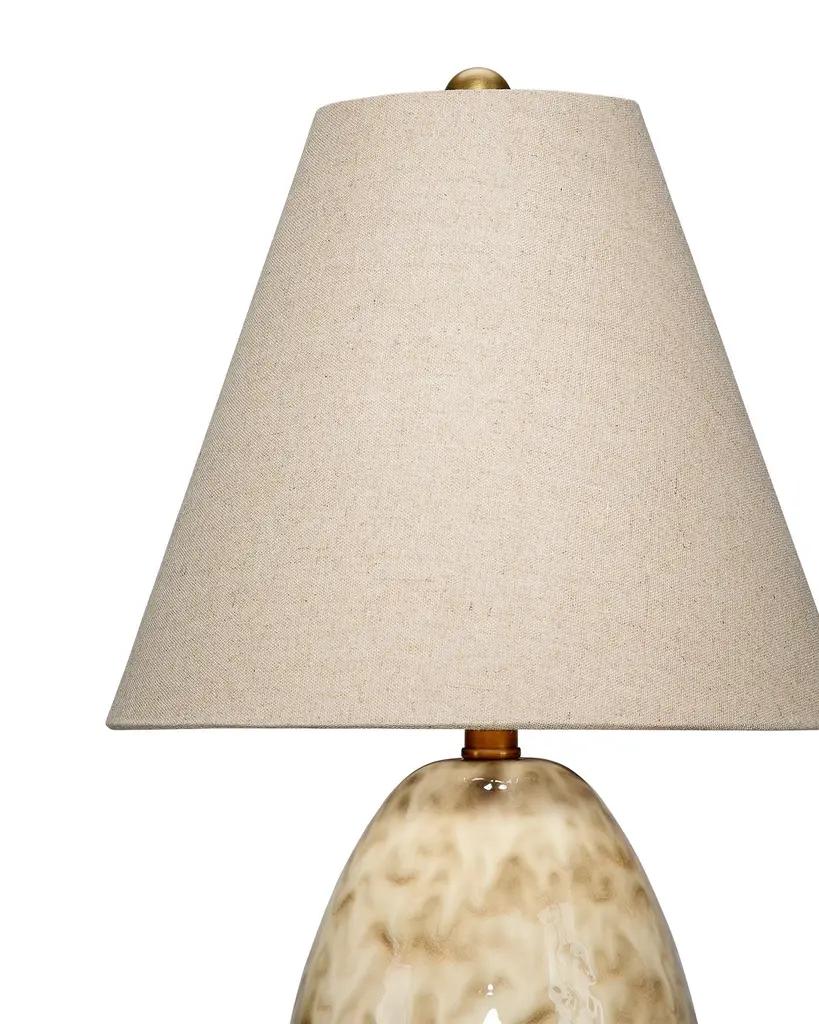 With its generously curved body and hand-applied layers of reactive glaze, this lamp’s clean lines make it an easy match for most homes. Flashes of brass hardware add additional warmth, and we top the unpretentiously elegant look with a tapered linen shade. Place a pair on either side of your bed, or try one next to an oversized armchair to create a comfortable reading nook.