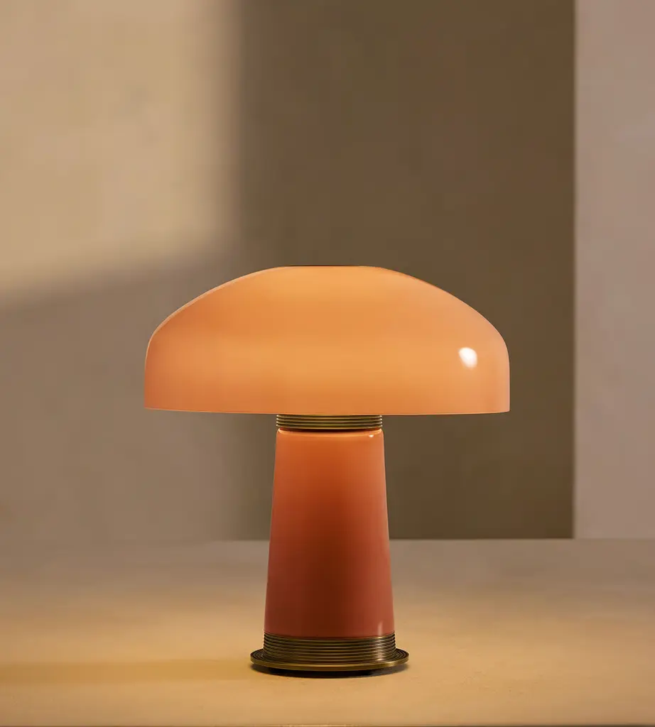 A portable, dome-shaped design is crafted from coloured glass for a warm glow. Inspired by the lights that sit on the outdoor tables at 180 House, our Janie lamp is crafted entirely from glass with brass bands around the base, stem and at the top of its domed shade. This lamp is fitted with a three-stage dimmer and is available in three colours that each cast a warm light across the room.