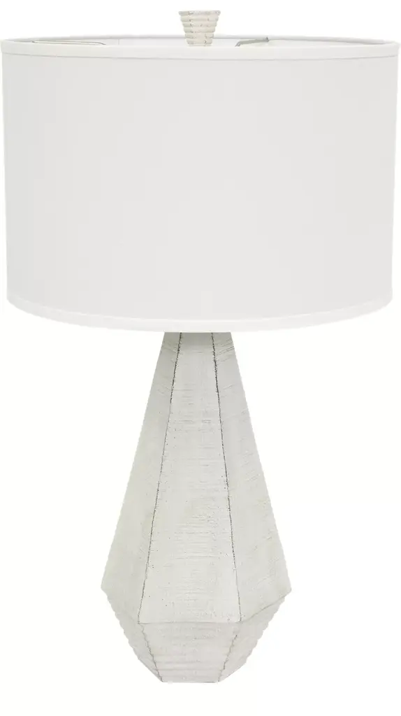 Introducing our Jareth table lamp, a perfect blend of contemporary design and functionality. Featuring a geometric body available in distressed black or weathered white, this lamp adds a rustic, modern touch to any room. The white linen shade provides a soft, diffused light, ideal for creating a cozy atmosphere. This piece features a rotary switch, 6-foot cord, and uses an E26 150W light bulb. Bulb is not included. Please select your color before adding to cart.