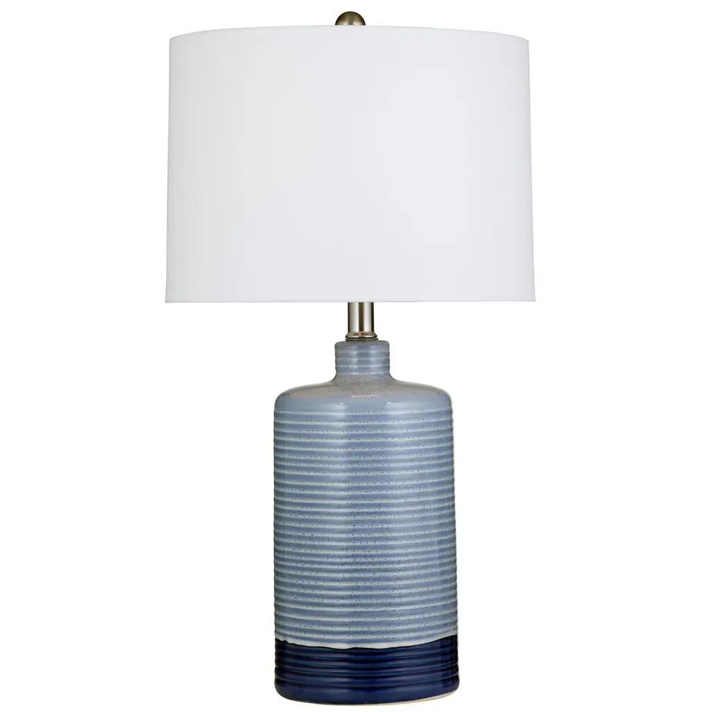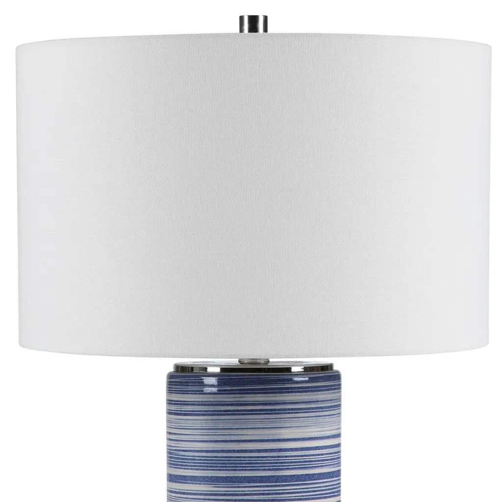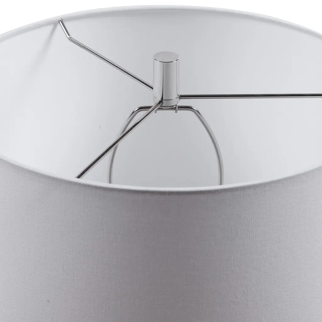 Illuminate your space with the Jasperine Table Lamp, a perfect blend of contemporary style and timeless elegance. This ceramic table lamp features a striking striped glaze that effortlessly captures the eye, complemented by polished nickel accents that add a touch of sophistication. The lamp is crowned with a round hardback drum shade crafted from white linen fabric, ensuring a soft, inviting glow. Ideal for any modern setting, the Jasperine Table Lamp is a chic addition that enhances the ambiance of any room.