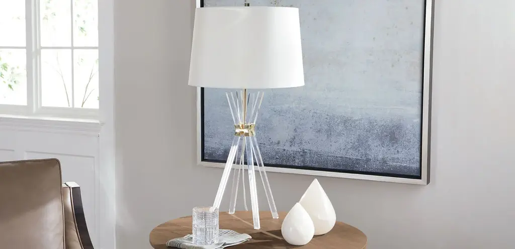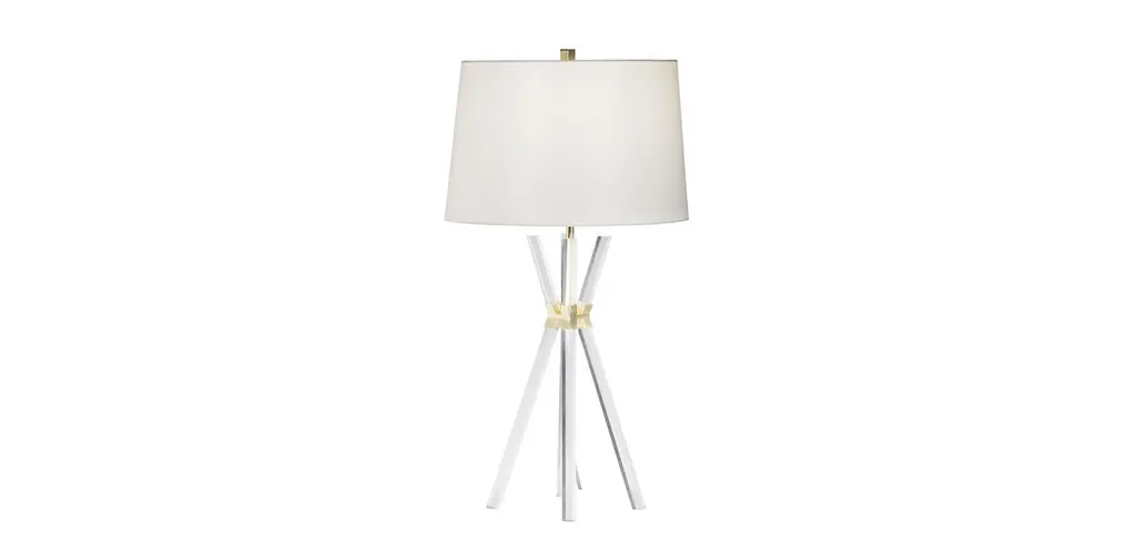 A cousin to our Tomas floor lamp, Jayce is an airy, thin, and truly modern tripod-style lamp. A small metal fitting with a gold look adds a hint of detail for an otherwise-minimalistic table lamp whose acrylic legs do all the talking.
