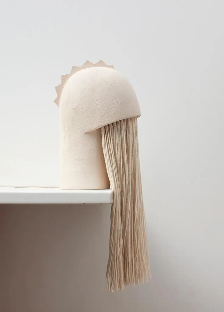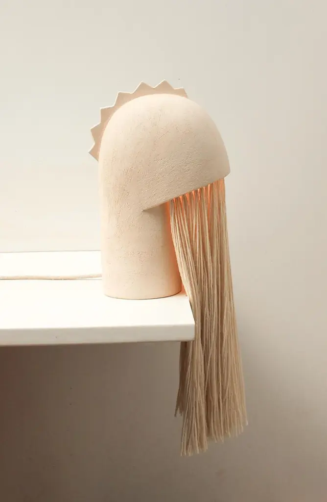 Jeanne 2 Stoneware Lamp by Elisa UbertiDimensions: W 50 x H 60 cmMaterials: Stoneware and woolThis product is handmade, dimensions may vary.All our lamps can be wired according to each country. If sold to the USA it will be wired for the USA for instance.After fifteen years in fashion, Elisa Uberti decides to take the time to work with these hands and to give birth to new projects.Designer and artist, in her Roubaix workshop she mainly works with sandstone, her favorite material, which she models to create sculptures, lamps or vases with curved and comforting shapes testifying to an ancestral manual gesture. His works form a particular microcosm, far from standardization, and testify to his artistic sensitivity. A refined universe with multiple inspirations such as mineral and organic nature, nomadism, architecture and the poetry of space linked by the same common thread, respect for passing time and a need for timelessness. His work, on the border between art and design, combines tradition and modernity. She constantly seeks the difficult balance between the rigor of technical constraints and the necessary freedom and spontaneity of the gesture.