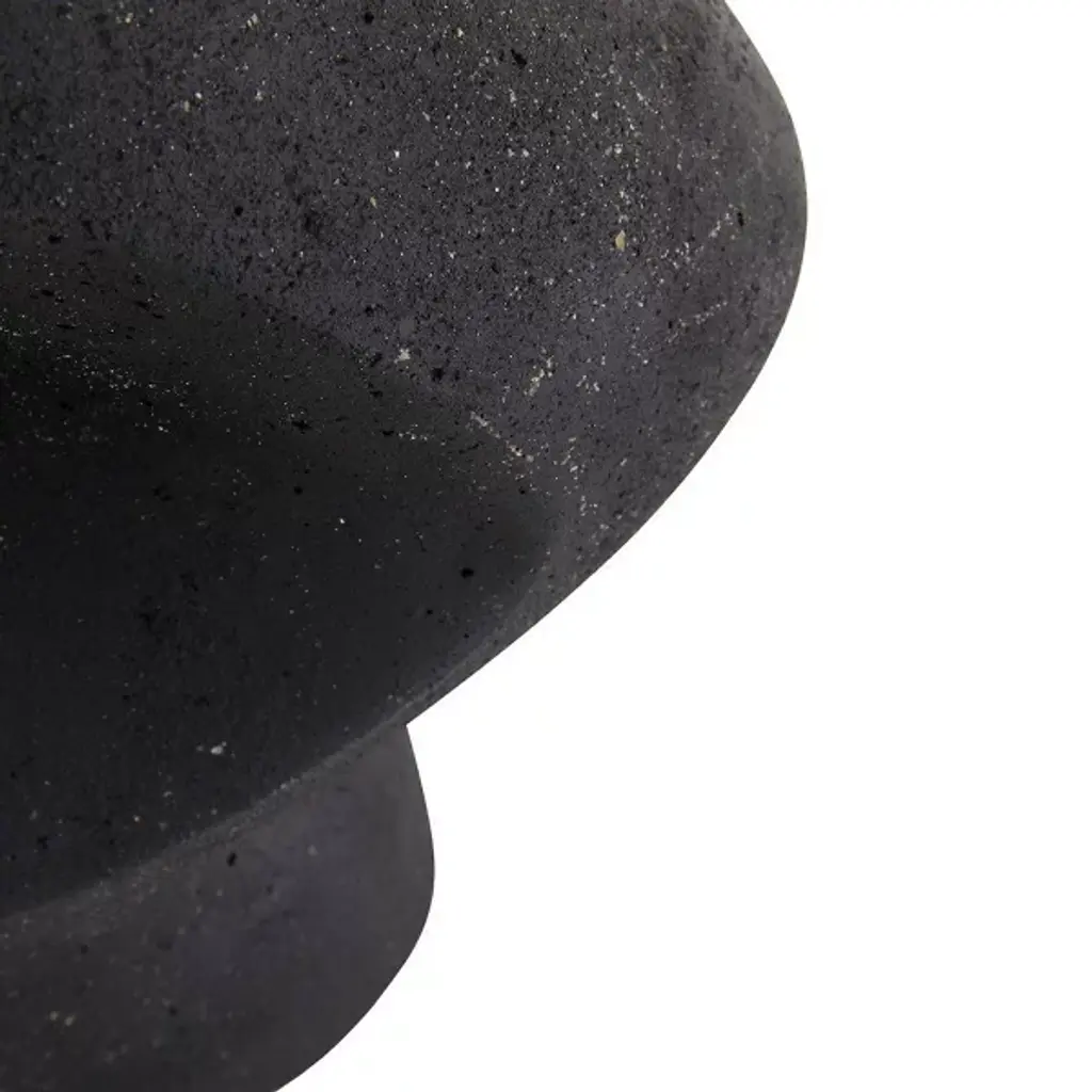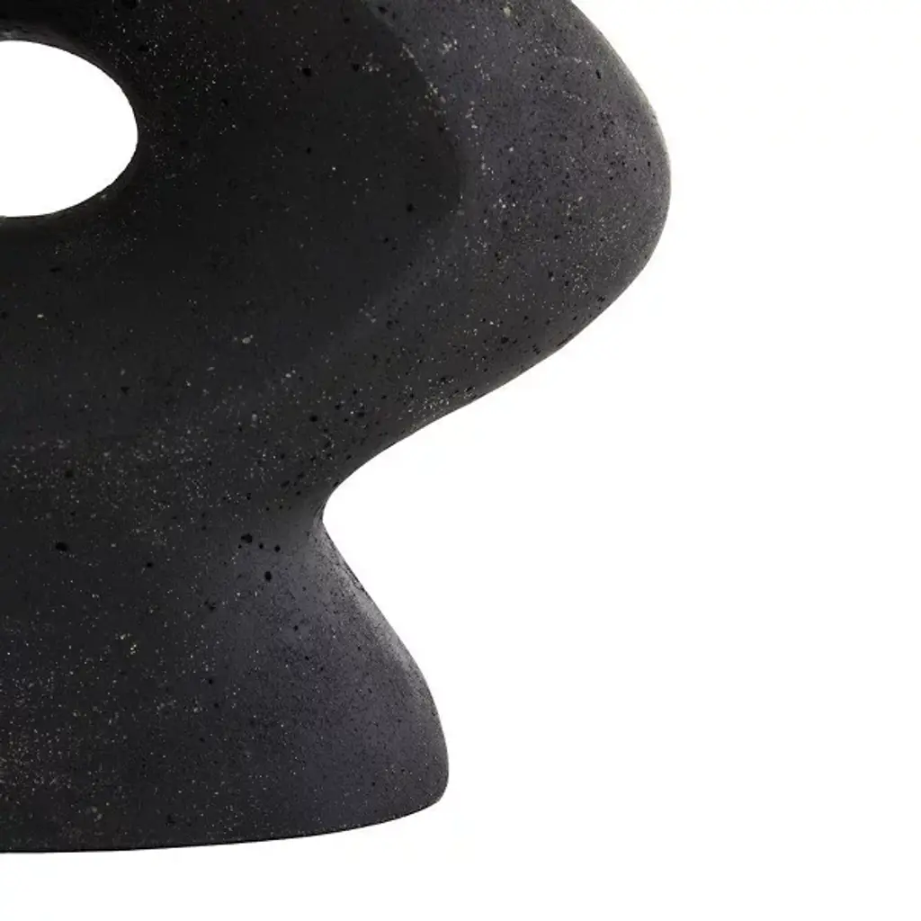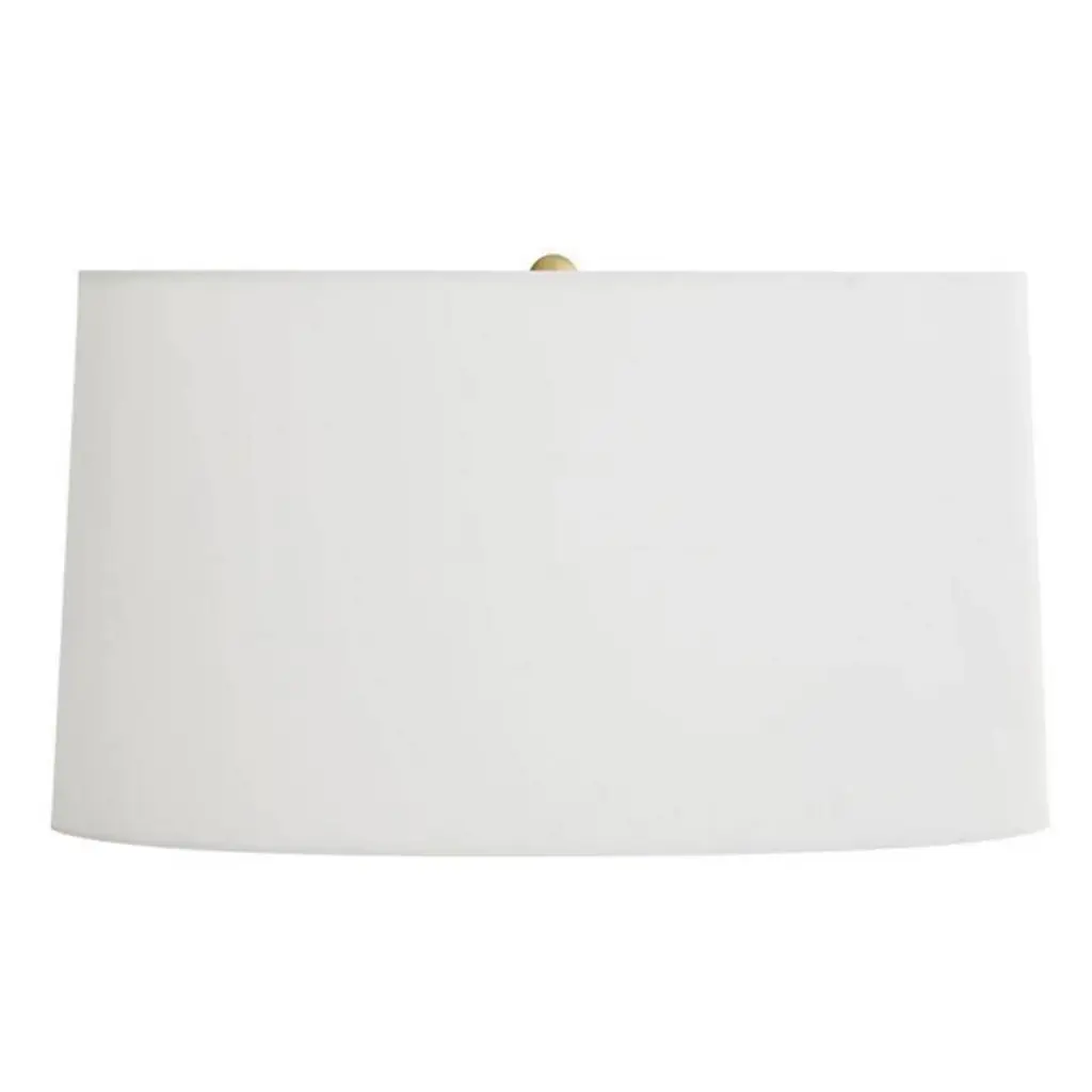 The Jemai Table Lamp from Arteriors challenges conventional symmetry with its stacked, asymmetrical oval forms crafted from charcoal ricestone. This lamp's volcanic-inspired base creates a dramatic profile that becomes even more dynamic when illuminated, as light highlights the sculptural negative space between the distinctive shapes. The antique brass sphere finial provides a deliberate contrast to the lamp's angular nature. Its black cloth cord integrates seamlessly with the dark base. The microfiber shade diffuses light evenly over side tables, desks, and consoles.
