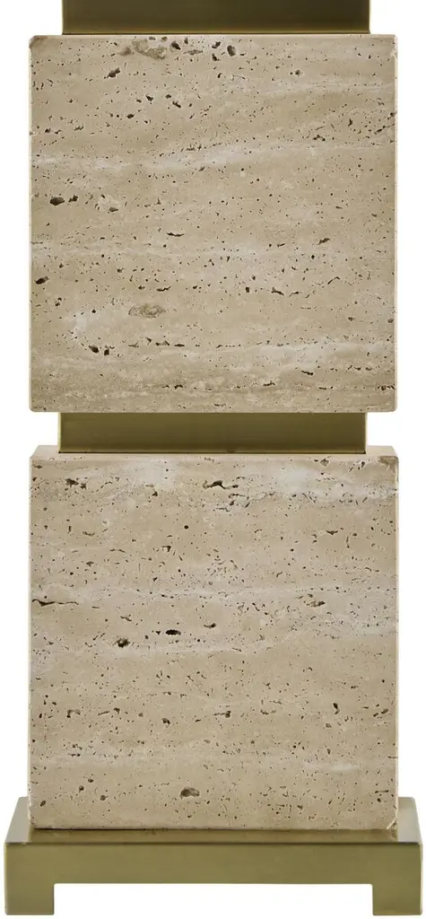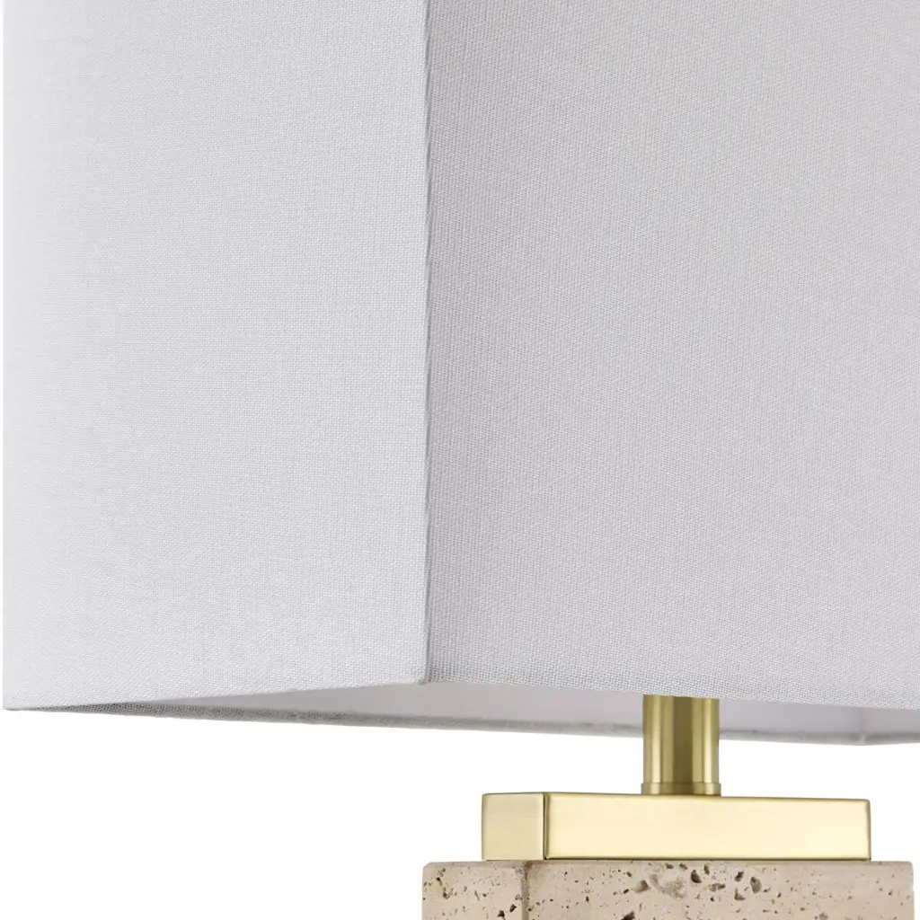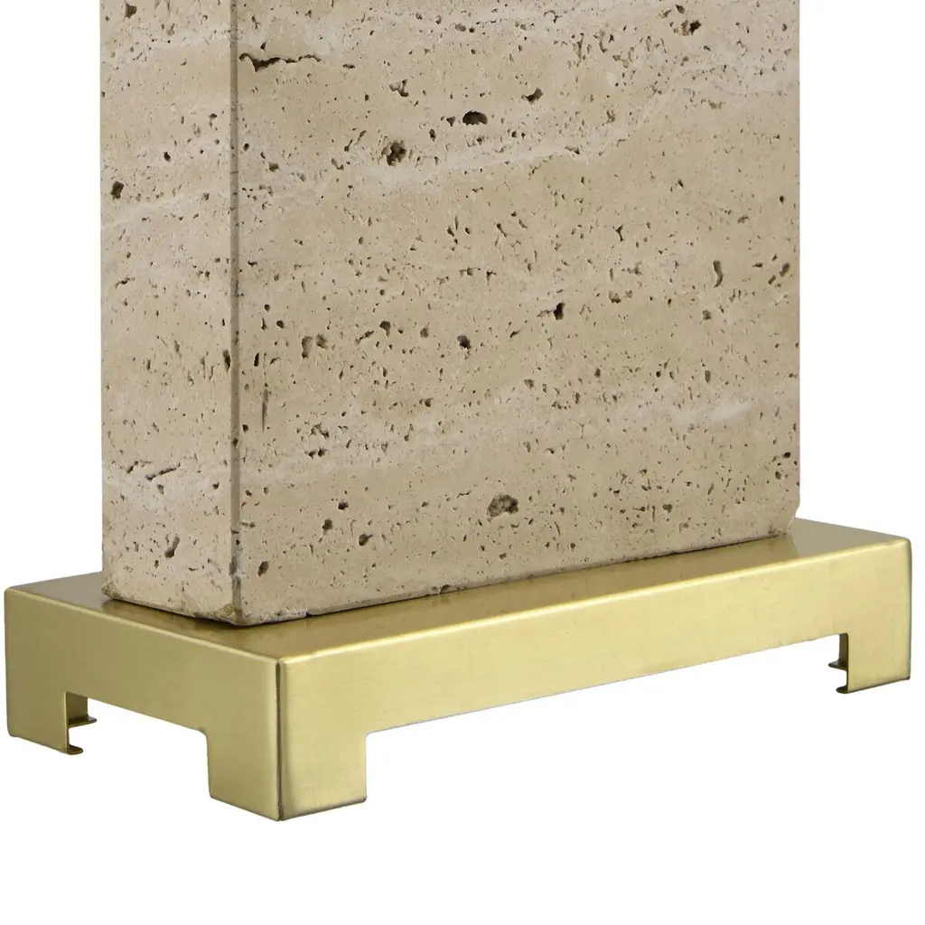 Discover the Jenevieve accent table lamp, where traditional elegance meets modern simplicity. At 30 inches tall, this lamp is designed to make a statement in any room. Crafted from luxurious travertine, its body exudes timeless charm, while the sturdy iron base ensures both stability and style. The linen shade, featuring a dual-layered interior of linen and plastic, casts a warm and inviting glow that complements any decor. An iron finial adds an extra touch of sophistication, making the Jenevieve lamp not just a source of light, but a piece that enhances your living space. With easy maintenance requiring only a dry cloth wipe-down, this lamp effortlessly combines function and flair for your home.