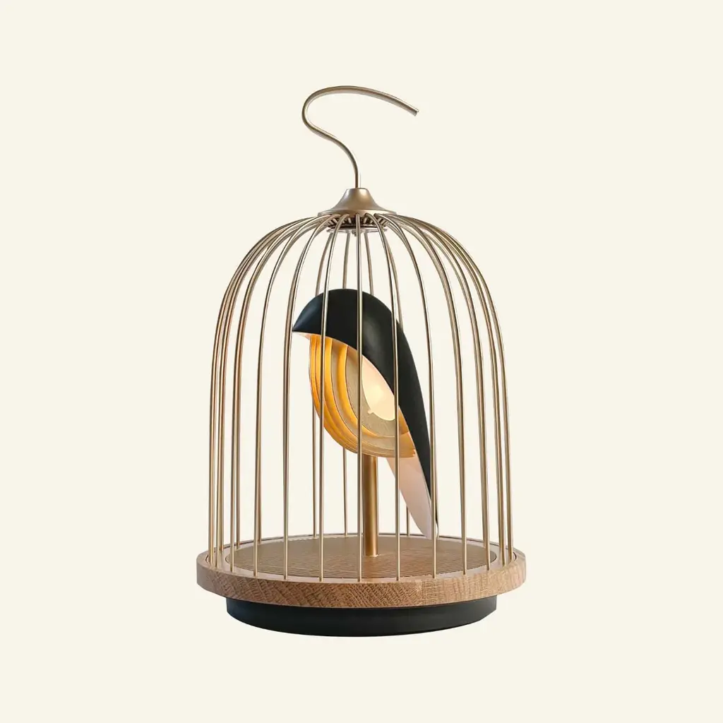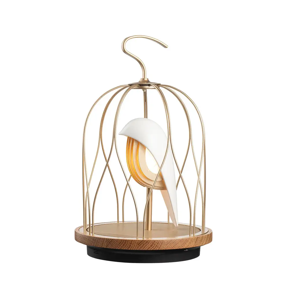 Experience the perfect blend of light and sound with the JinGoo Bluetooth Speaker/Light from Daqi Concept. This unique table lamp combines Eastern aesthetics with cutting-edge technology, featuring a sleek bird-shaped design and high-performance sound quality. With its wood-ringed circular platform and separate Bluetooth speaker, immerse yourself in a truly immersive sensory experience. Elevate your ambiance with the subtle stereo effect and vibrant presence of this artfully crafted piece. Highlights