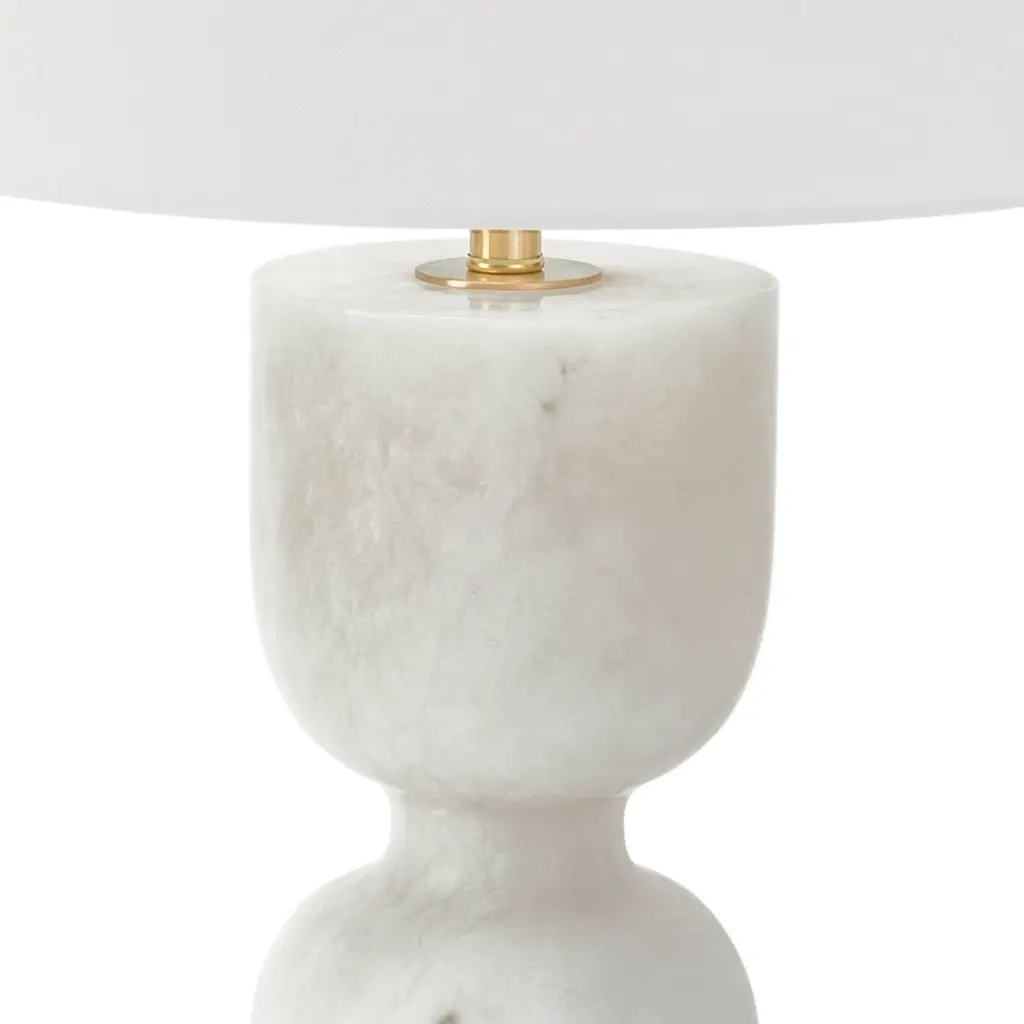 Joan alabaster lamp is shapely yet stately, carved from a solid piece of stone. Its organic feel brings softness to any modern space.