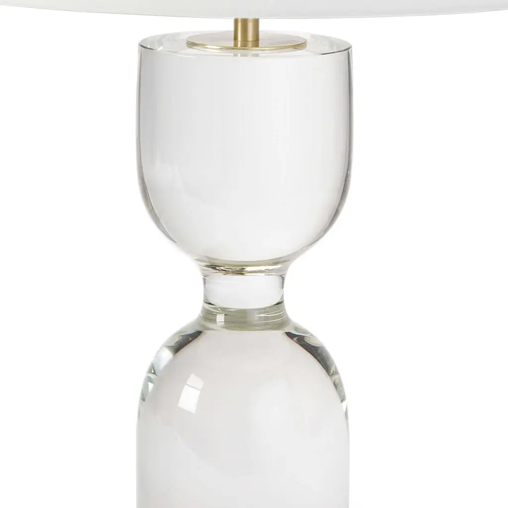 Crafted of crystal with an hourglass silhouette, this table lamp lends sleek, modern style to any room. A white linen shade completes the design.