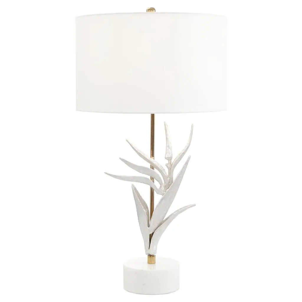 John-Richard Birds Of Paradise French Country Pearl White Metal Petal Table Lamp
