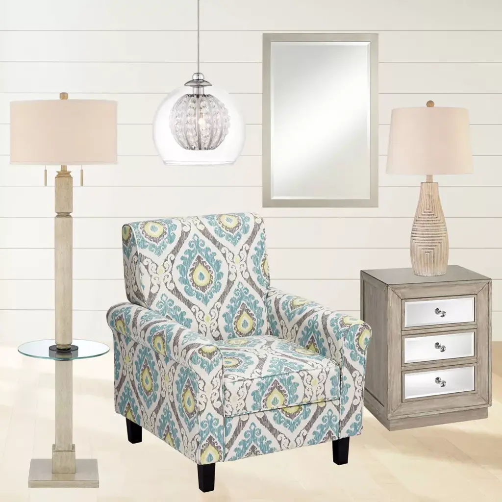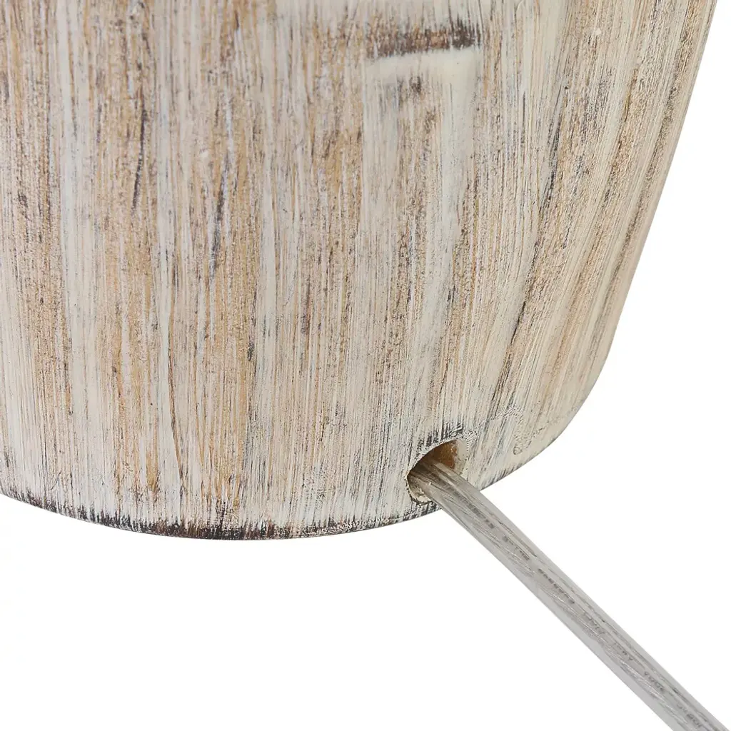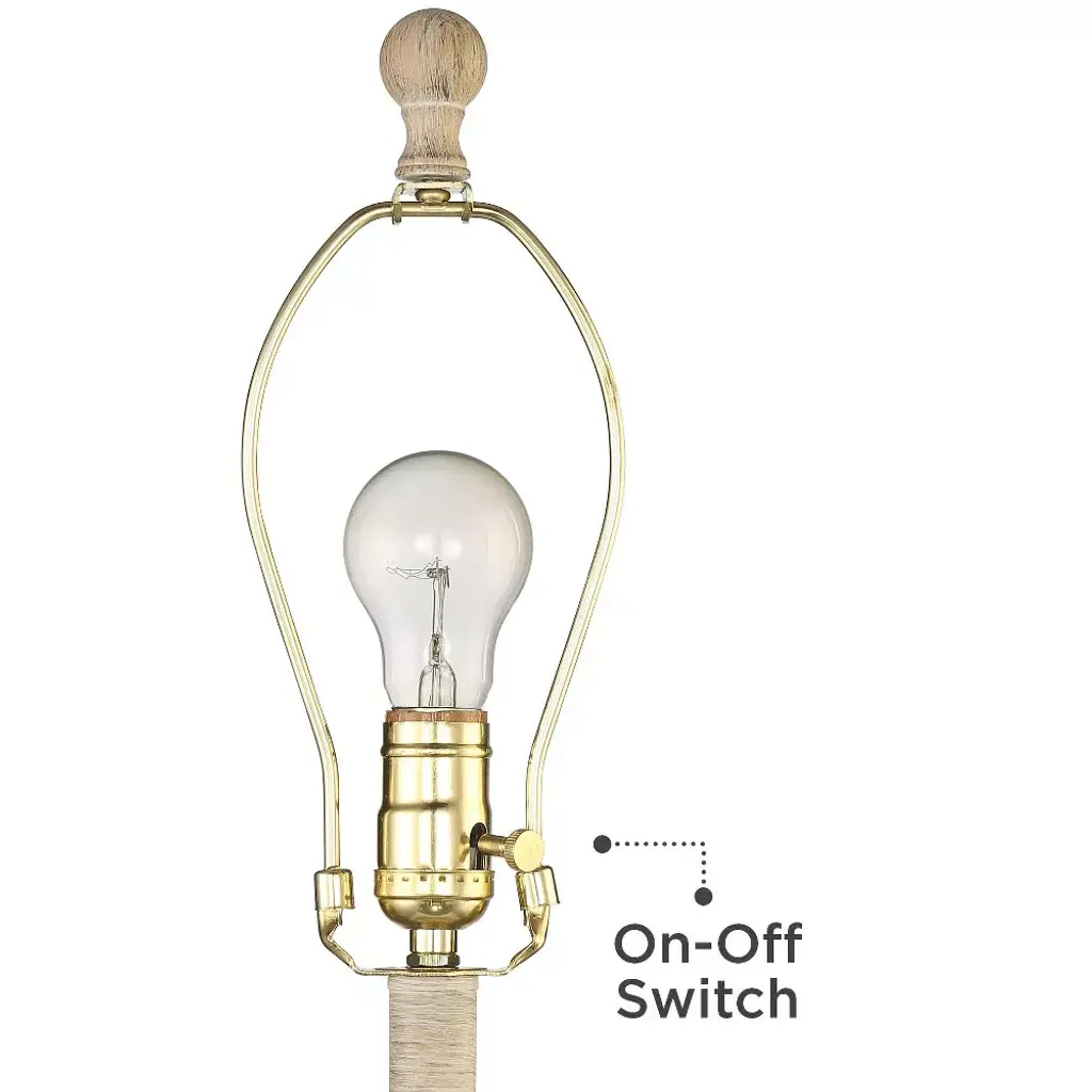 From John Timberland lighting, this rustic table lamp adds a rugged desert flavor to any setting. It features a worn faux wood finish in light, sandy color tones, with a faint geometric pattern imprinted onto the curving silhouette. An oatmeal drum shade on top provides an earthy finish touch. Turn the light on and off with a switch located on the socket.
