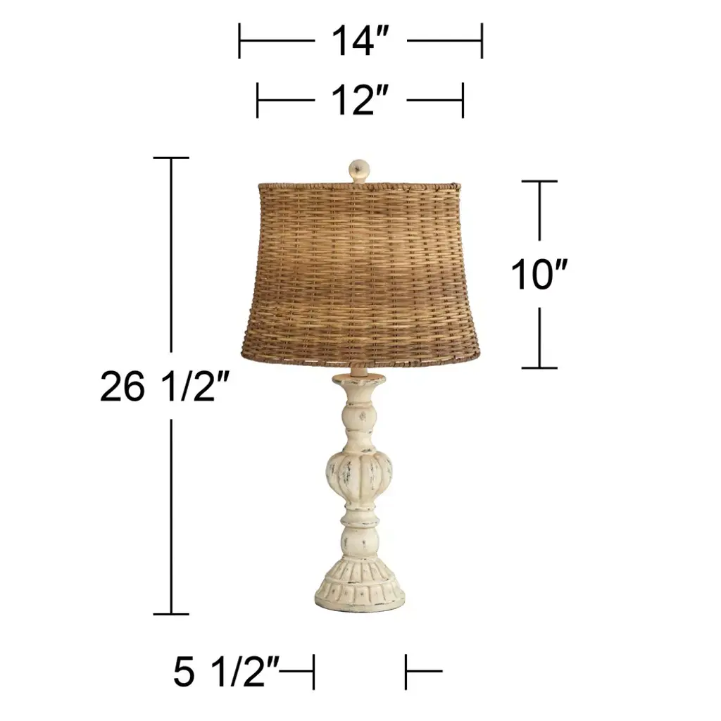 John Timberland Trinidad Country Cottage Table Lamps 26 1/2" High Set Of 2 Antique White Candlestick Rattan Tapered Drum Shade For Bedroom Living Room