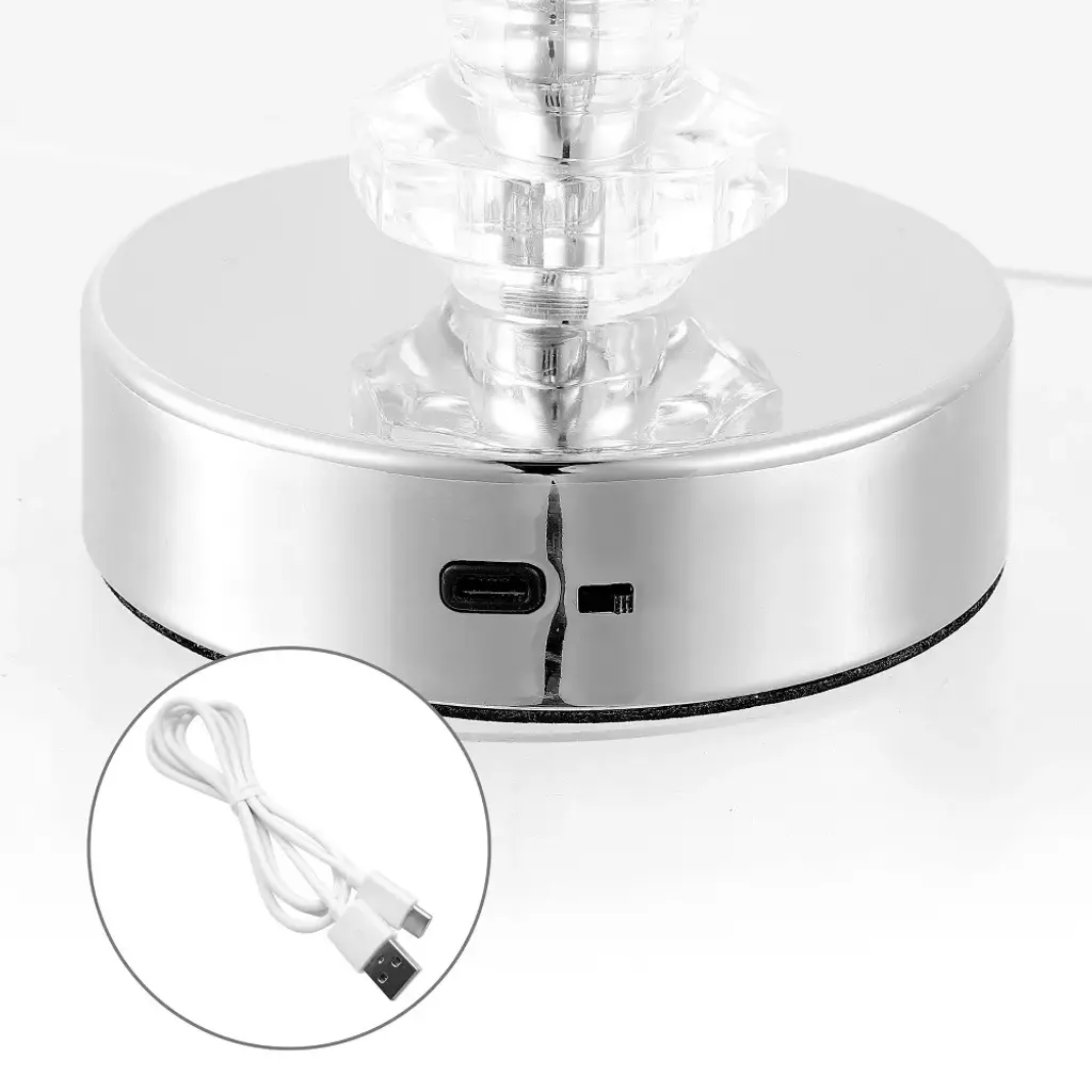 Sparkling acrylic crystal gives this cordless accent lamp a unique modern glam style. Cordless, portable lamp has a rechargeable battery for convenient accent lighting on a table, console, or vanity. This accent lamp's sparkling acrylic shade is glamorous and safe - it uses a cool LED bulb. Dimmable built-in LED lights, so no bulbs are required. Integrated 2W LED bulb. Color Temperature: 3000K. CRI: 80. Before cleaning any lamp shade or fixture, disconnect the power source. Wipe with a soft, dry cloth. Avoid the use of chemicals and household cleaners as they may damage the finish.