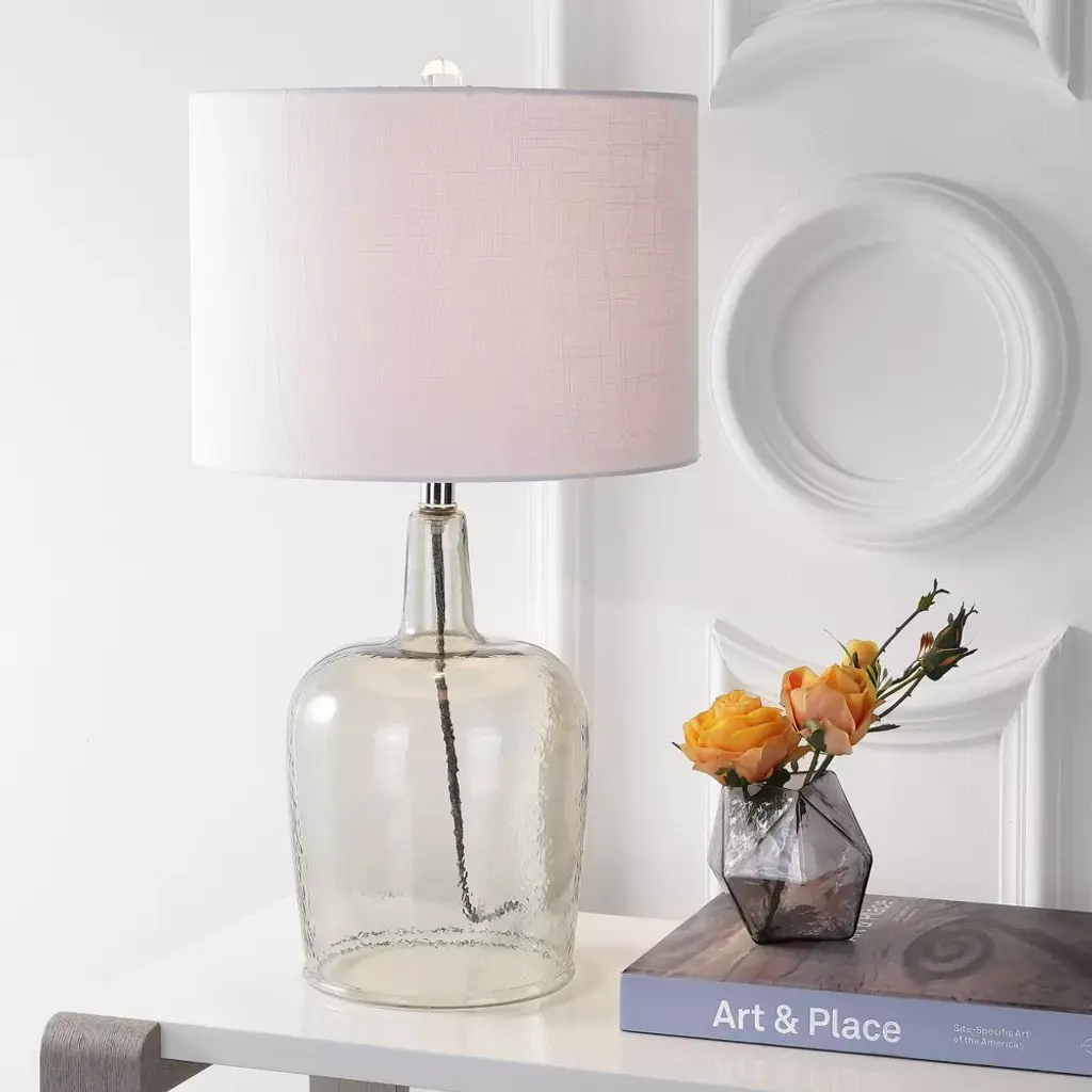 Jonathan Y 26" Glass Augustine Table Lamp (Includes Led Light Bulb) Gray: Linen Shade,modern Nightstand Lighting