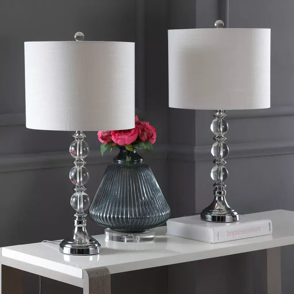 Jonathan Y 26" Set Of 2 Paul Crystal/metal Table Lamp (Includes Led Light Bulb) Chrome: Modern Linen Shade, Ul Listed