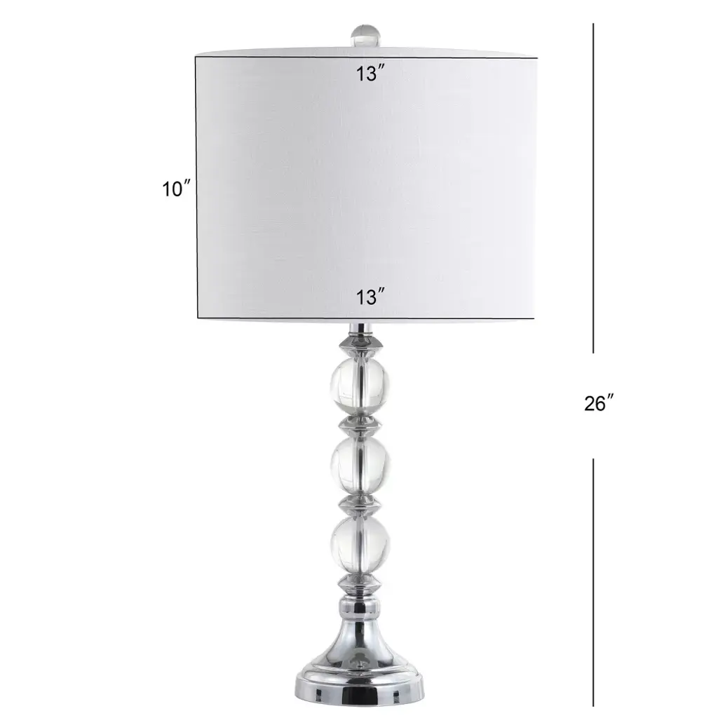 Make room for traditional elegance, as a column of crystal orbs and faceted gems stacks up and sparkles from every angle. The round base of our lamp continues the aesthetic while a slightly tapered linen shade enhances the light's reflection. Topped with a crystal finial and finished with a silk-wrapped 60' cord, this lamp will add traditional glamour to any home.