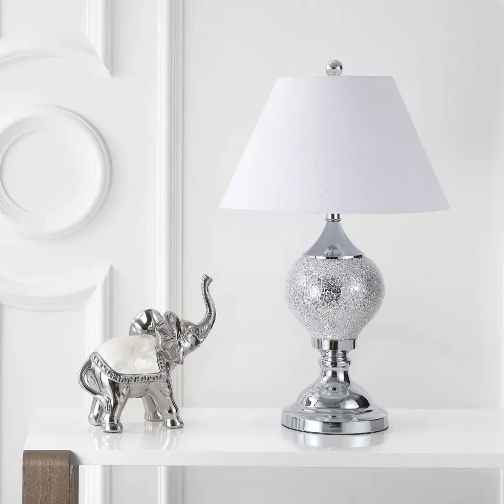 Jonathan Y 27" Louise Mirrored Table Lamp (Includes Led Light Bulb) Silver: Modern Empire Shade, Metal Body, Rotary Switch