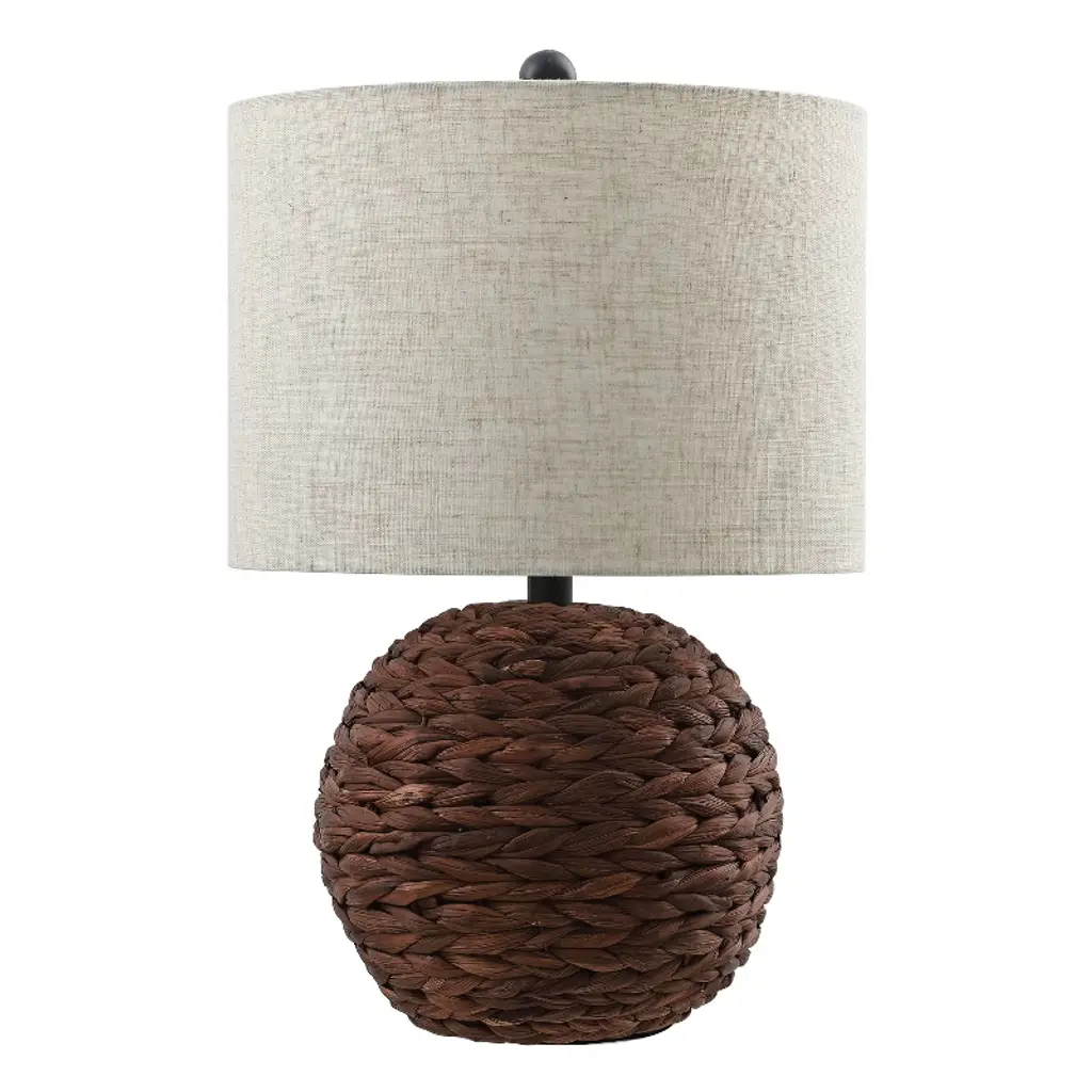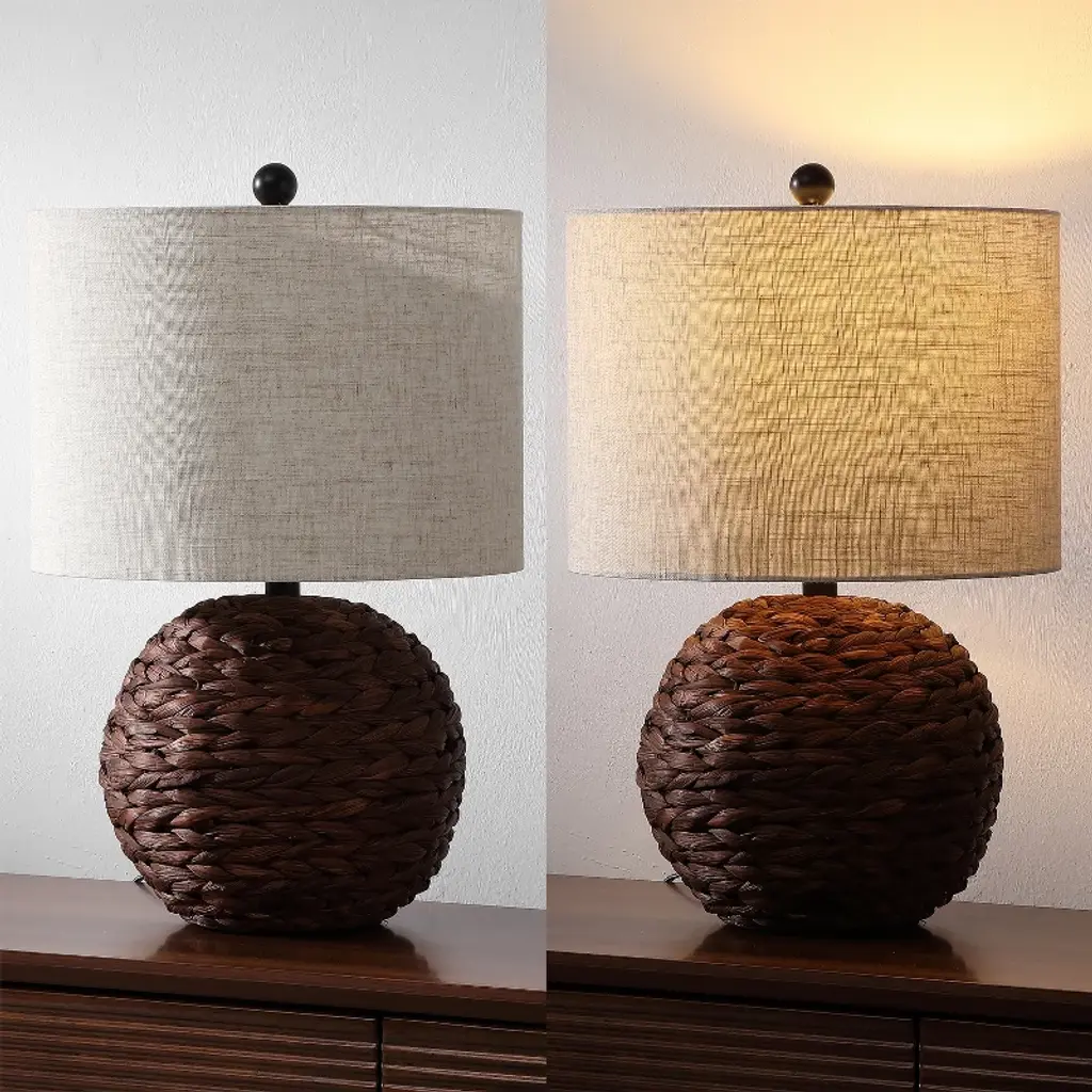 This versatile lamp combines modern style with coastal-inspired tones and textures for a timeless look. The globe-shaped base is covered in handwoven natural rattan fibers, and it's topped with a linen drum shade. The LED bulb adds bright, warm light to the bedroom, living room or office.