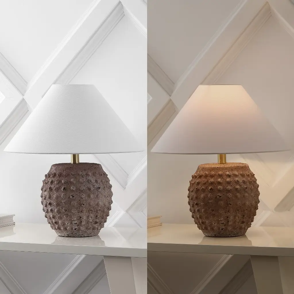 Jonathan Y Effie 18.25" Minimalist Scandinavian Ceramic/iron Hobnail Led Table Lamp, Matte Taupe (Set Of 2)