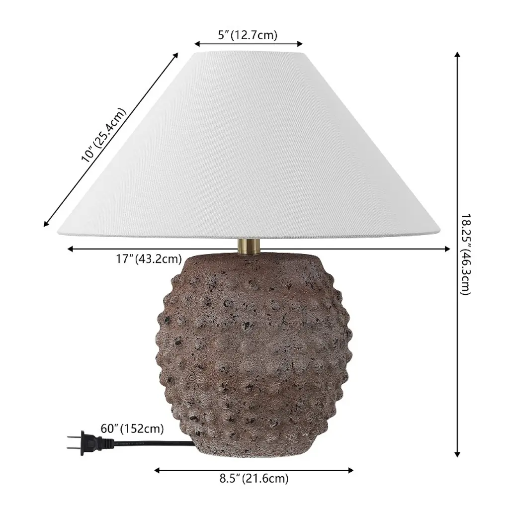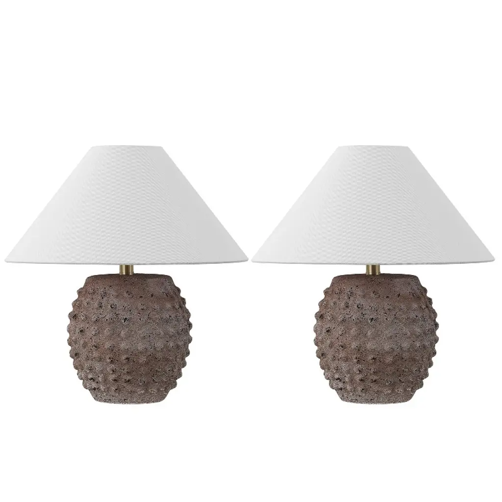 Add a vintage twist to your home with our pair of minimalist, modern jar lamps. Heavy resin bases are textured like hobnail glass, and topped with tapered linen shades. The chic matte finish adds low-key style to the bedroom, office or living room.