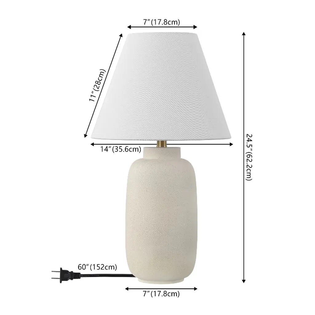 Make a modern statement with the classic silhouette of our minimalist lamps. Heavy resin bases in a ginger jar shape are topped with cone-shaped linen shades. The chic matte finish adds contrast to a bedroom, office or living room.