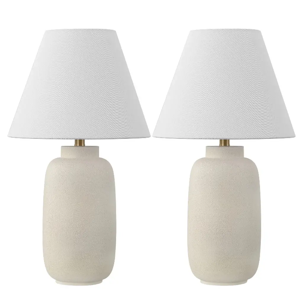 Jonathan Y Elinore 24.5" Minimalist Scandinavian Resin/iron Ginger Jar Led Table Lamp, Matte Cream (Set Of 2)