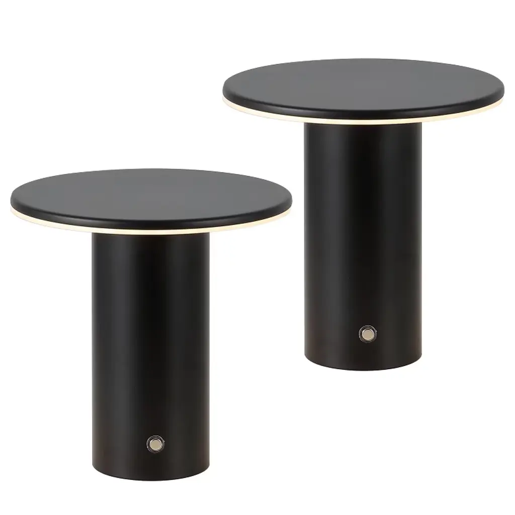Jonathan Y Gio 7.5" Modern Minimalist Column Rechargeable/cordless Dimmable Integrated Led Table Lamp With Touch Sensor, Black (Set Of 2)