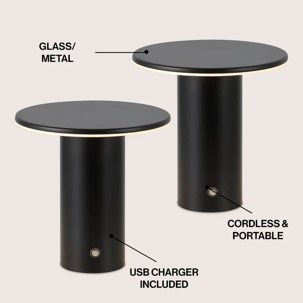 Add modern flair to any space without an outlet; just add this rechargeable accent lamp. The minimalist column design is topped by a disc shade with integrated LED bulbs for plenty of light, and has a touch-sensor dimmer switch. This battery-powered mini lamp is a chic addition to any dining room, living room, bedroom or entry.
