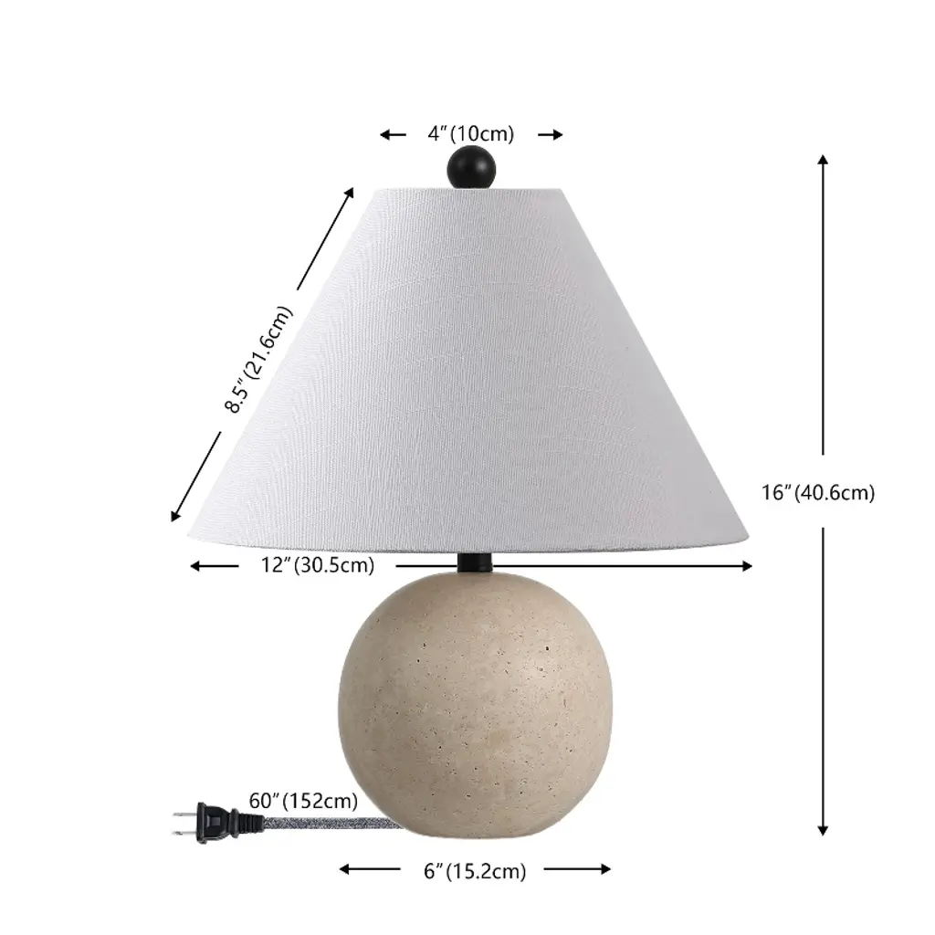 Jonathan Y Liza 16" Modern Minimalist Travertine Globe Led Table Lamp, Beige