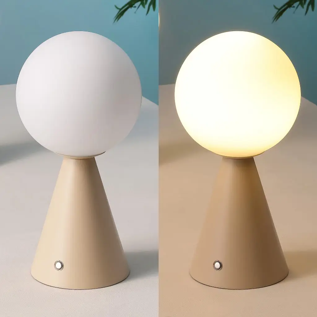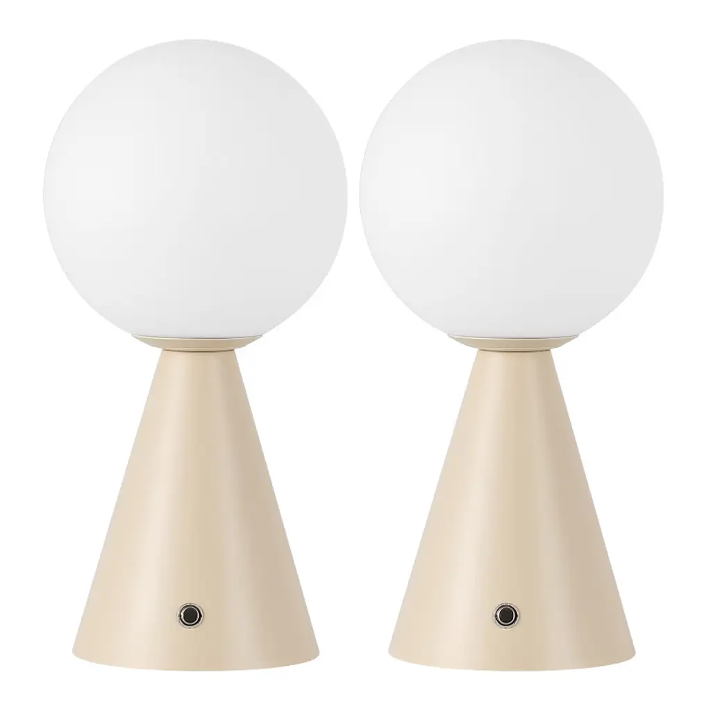 This pair of modern, minimalist lamps adds a warm glow to the bedroom, living room or office. The durable metal base is topped with a glass globe and features a bright LED bulb controlled by a touch sensor. Use this set of two cordless lamps almost anywhere with the rechargeable battery.