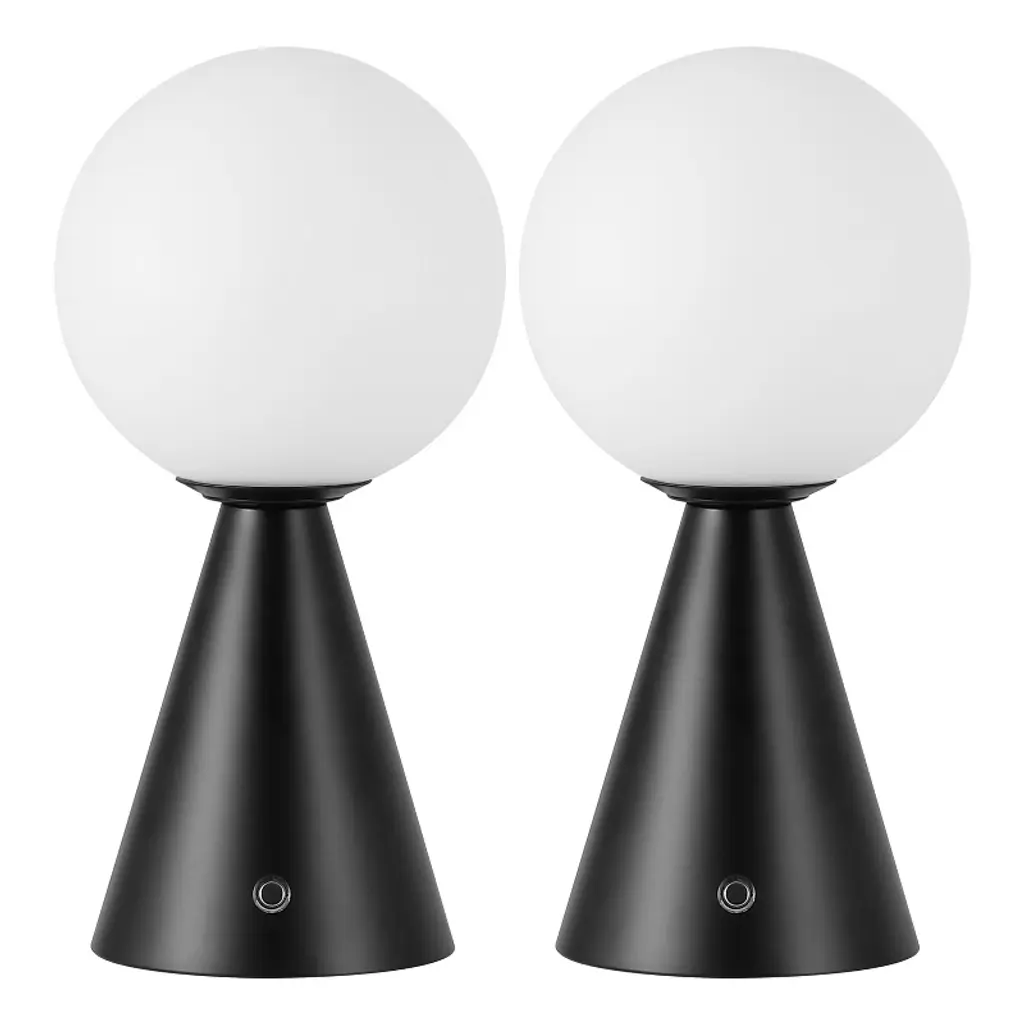 Jonathan Y Macie 11.75" Modern Minimalist Globe Rechargeable/cordless Dimmable Integrated Led Table Lamp With Touch Sensor, Black (Set Of 2)