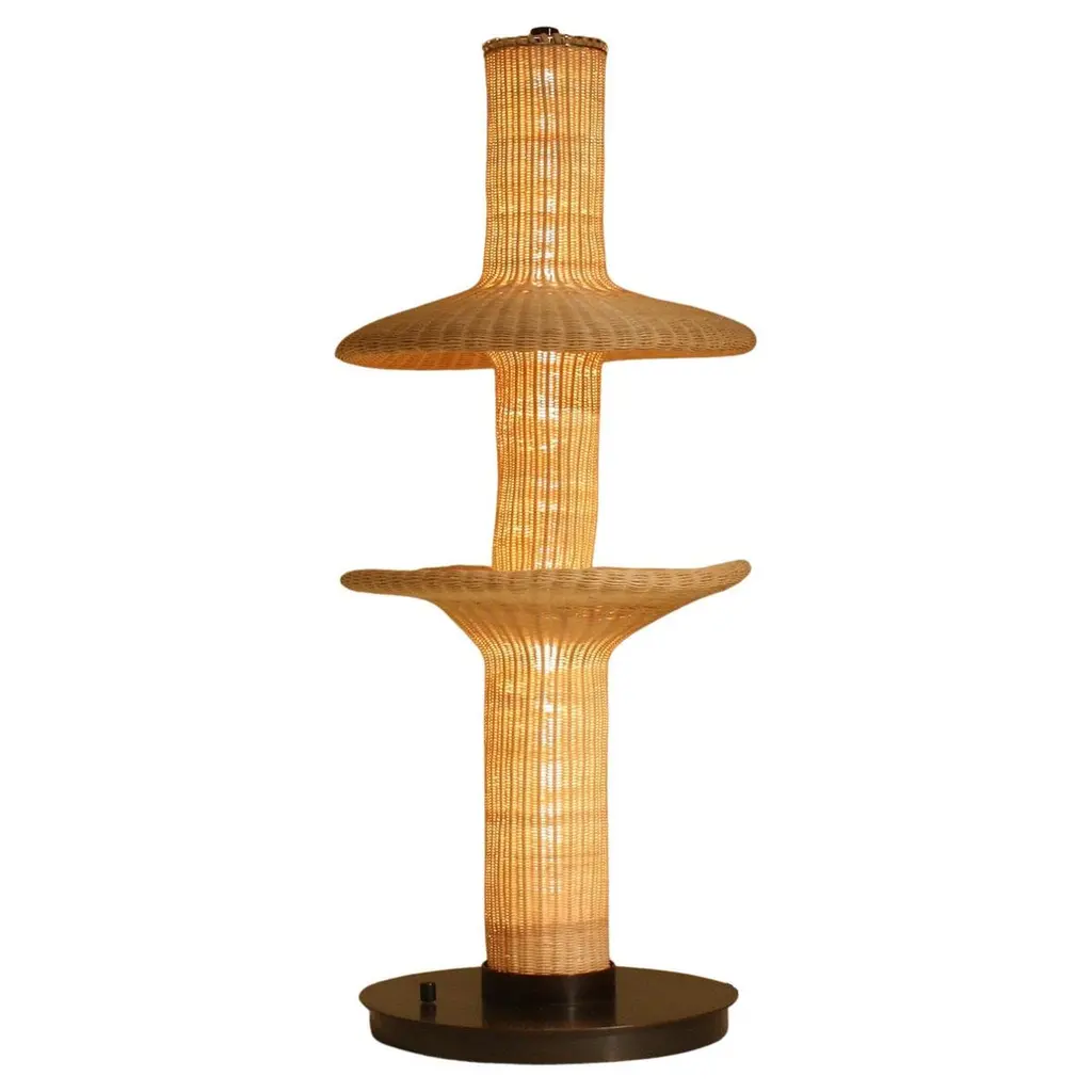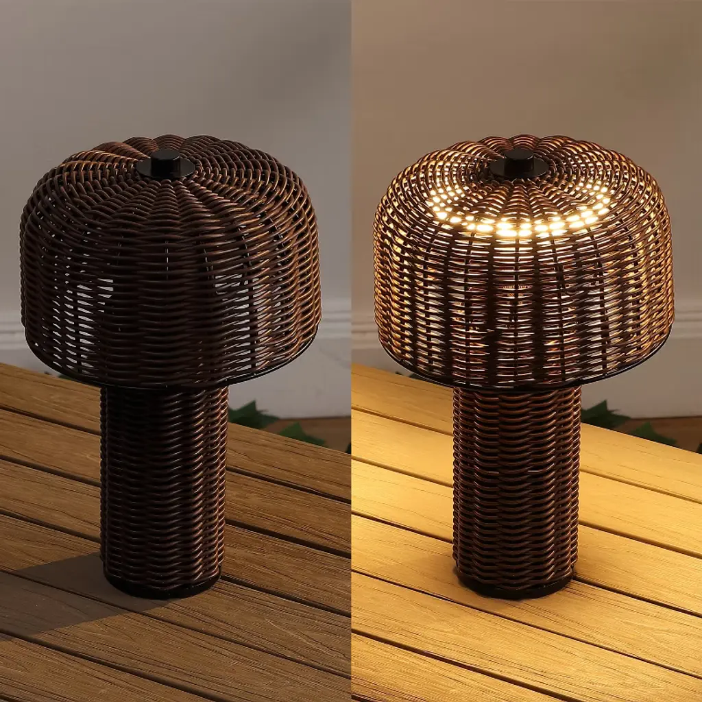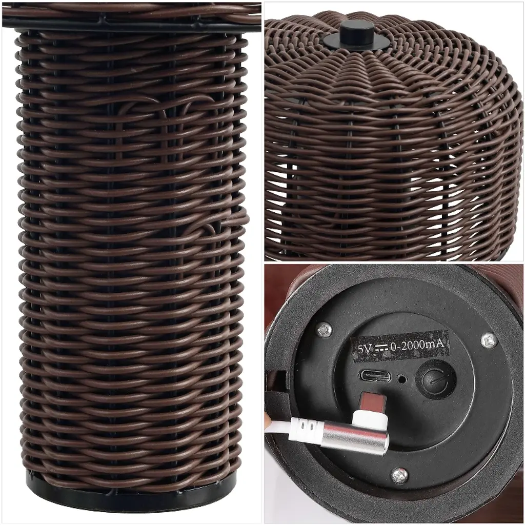 This pair of wicker lamps combines modern design with Scandinavian flair for the deck, porch or patio. The metal-framed base and shade are woven with durable faux wicker, and the LED bulb provides hours of warm, soft light. This stylish pair of outdoor lamps includes a charging cord.
