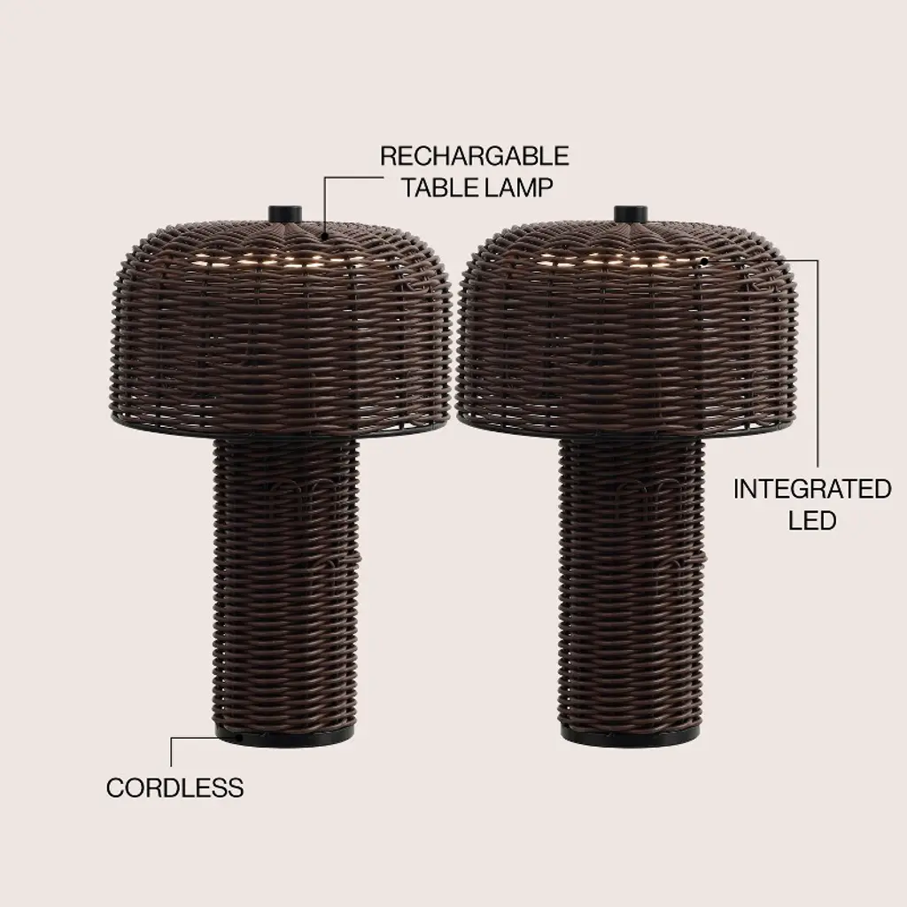 Jonathan Y Mia 10" Modern Indoor/outdoor Faux Wicker Rechargeable/cordless Dimmable Integrated Led Table Lamp, Dark Brown/black (Set Of 2)