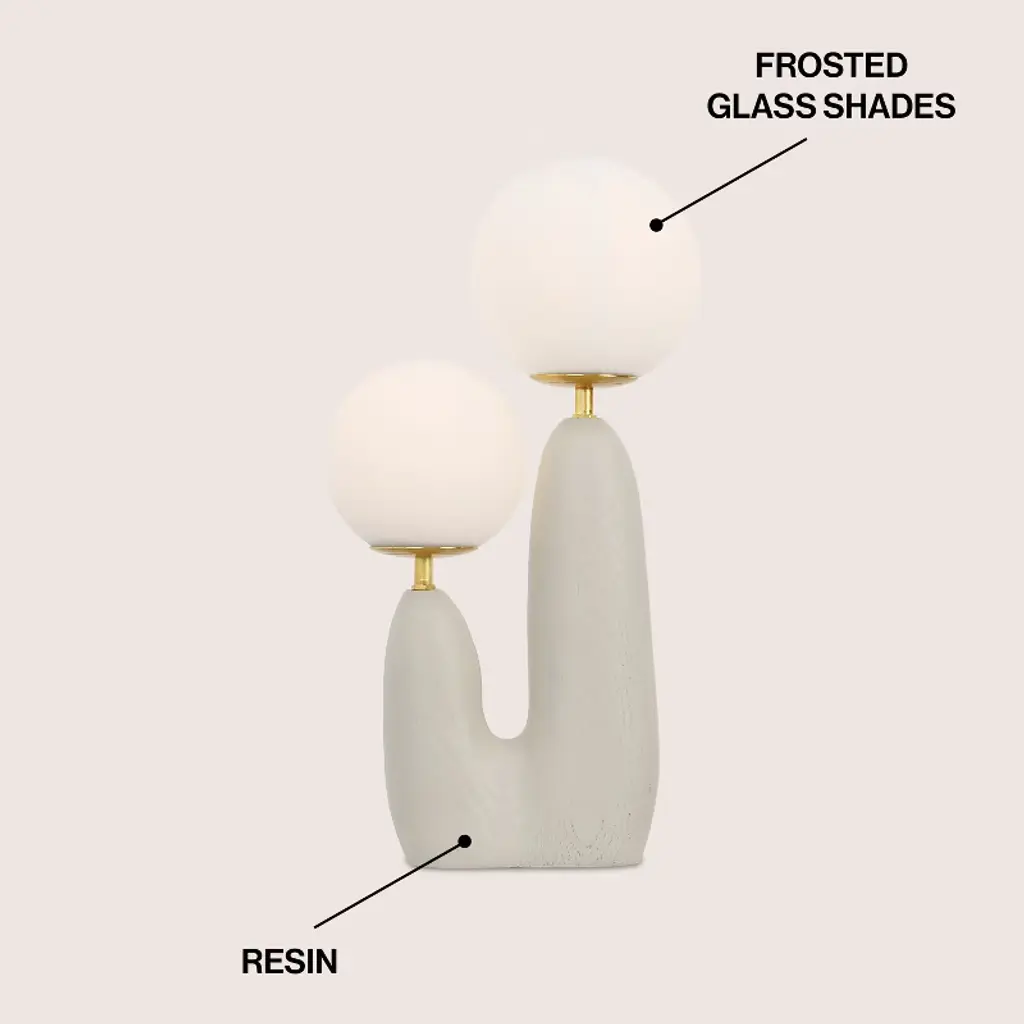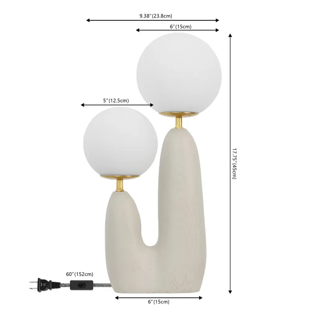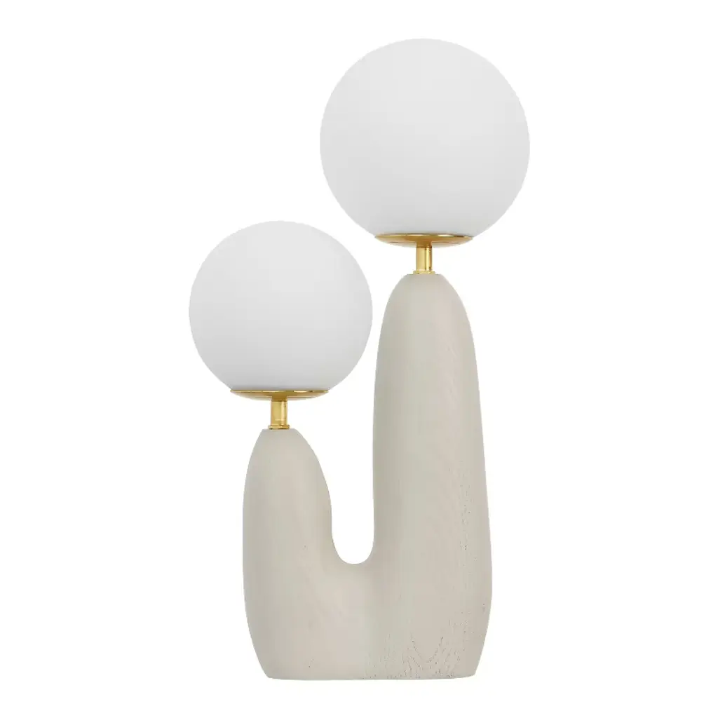 The wood-look design of this minimalist lamp has a mid-century modern Danish vibe. Inspired by Nordic style, this 2-light lamp is a chic addition to any living room, bedroom, or office. Frosted globes soften the bright LED bulbs to provide soft ambient light.