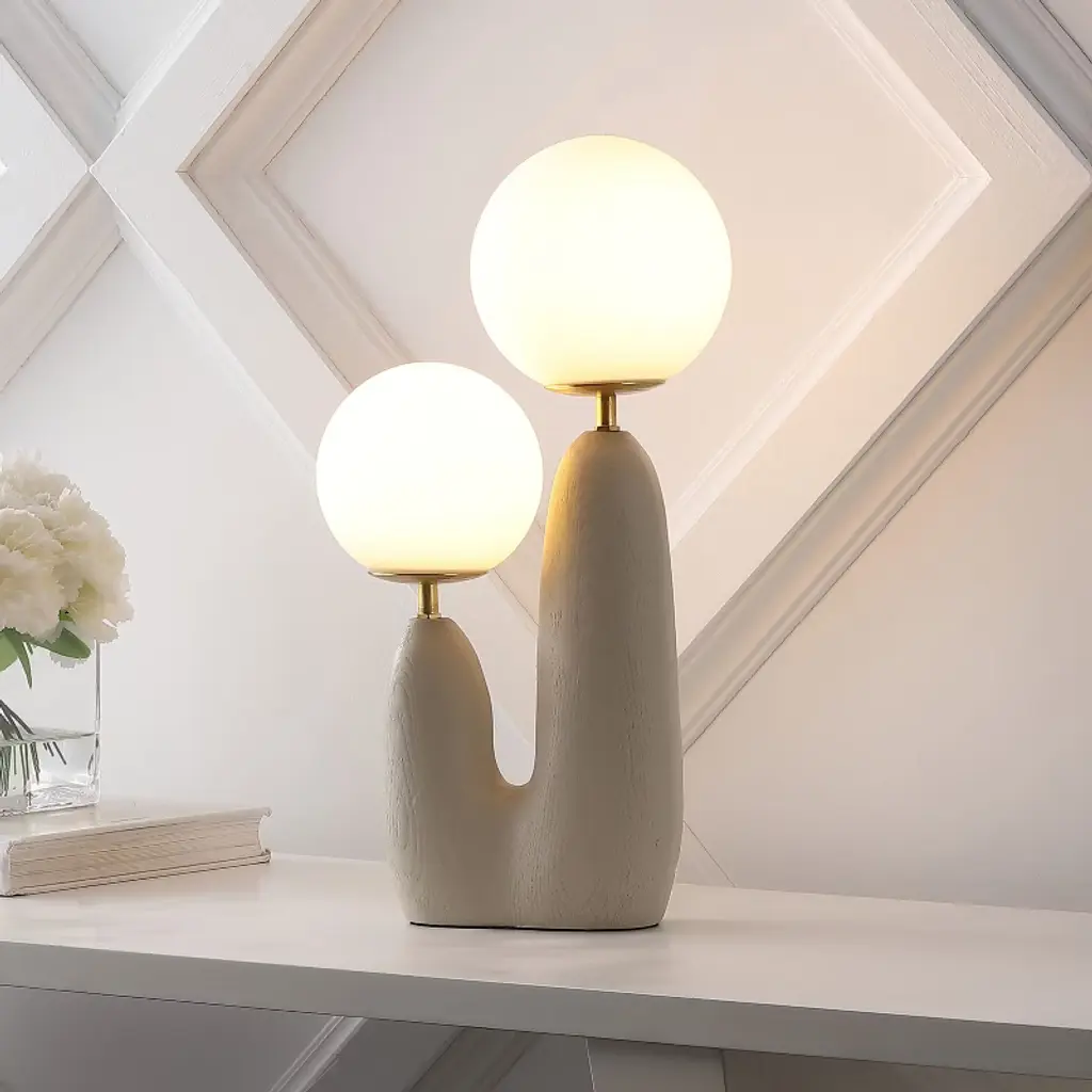 Jonathan Y Oda 17.75" 2-light Modern Bohemian Resin/iron/frosted Glass Danish Cactus Led Table Lamp, Almond/brass Gold