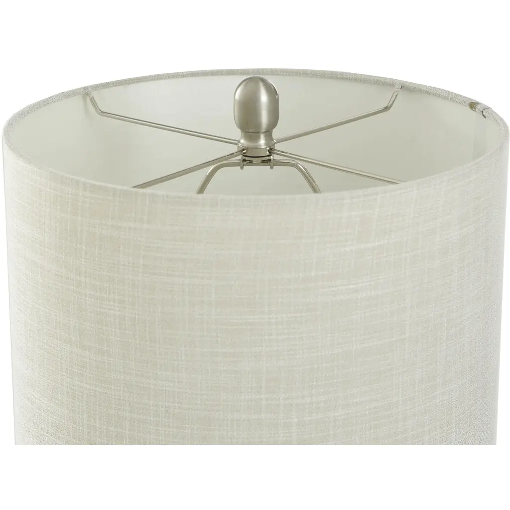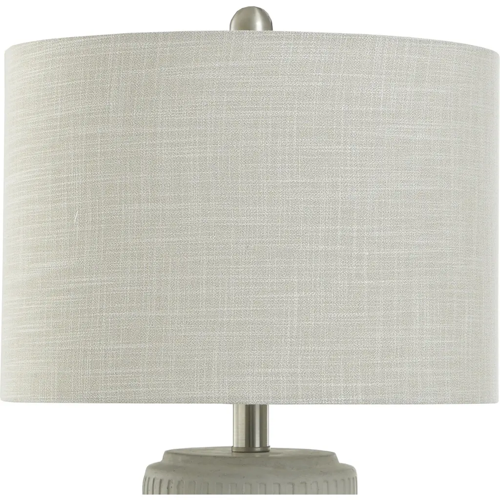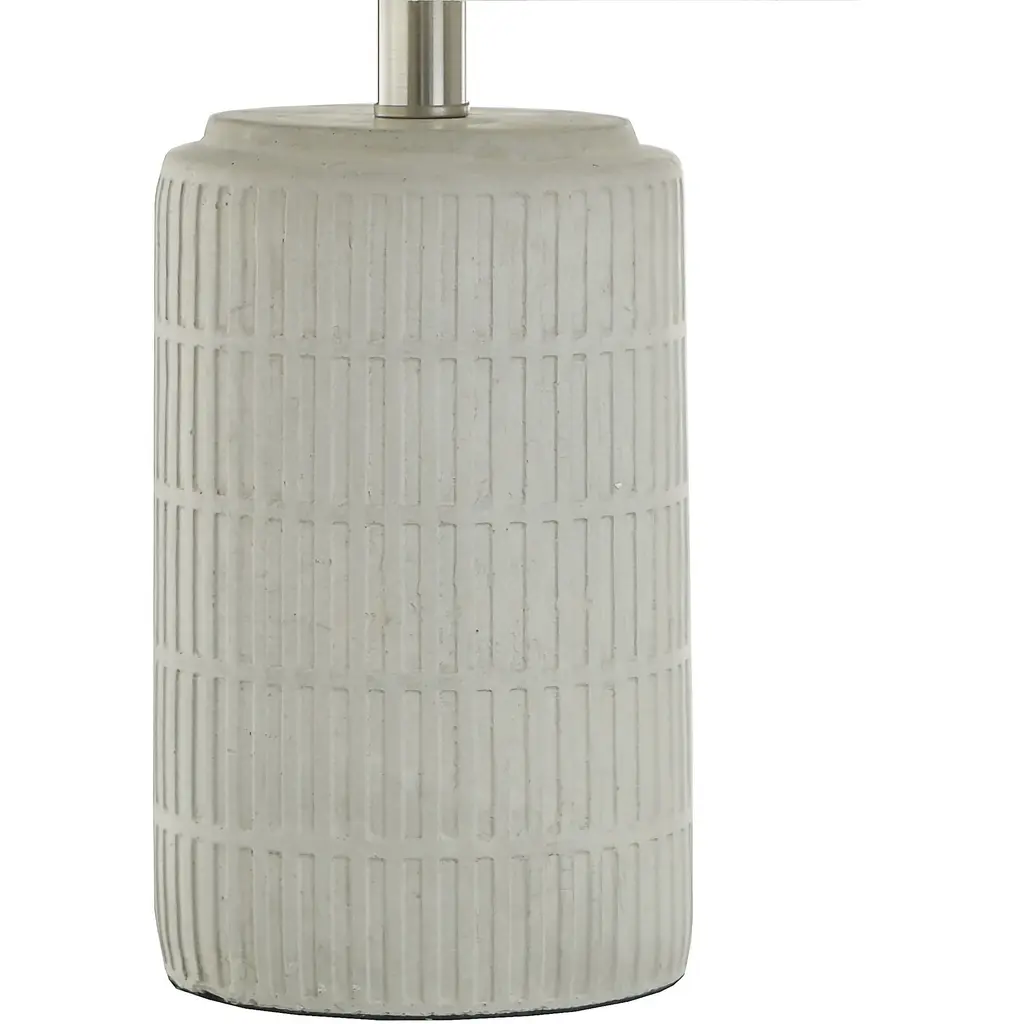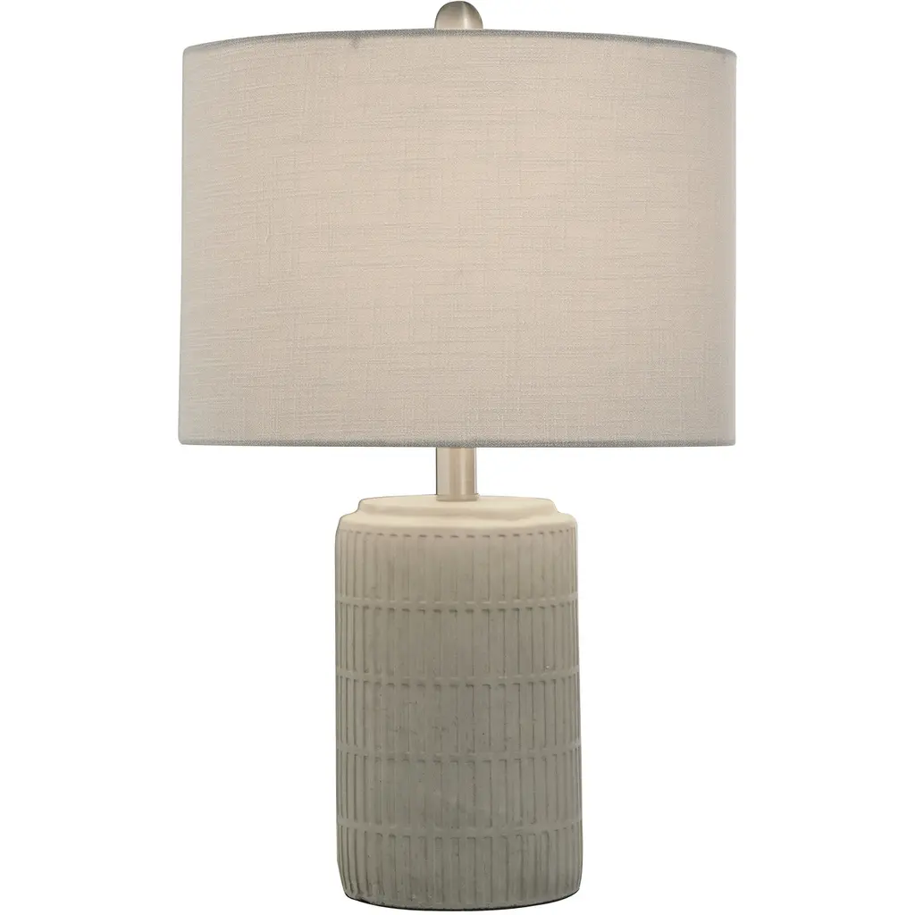 Joni Ceramic Table Lamp - Natural Cement Grey Finish - Heathered Off-White Drum Shade