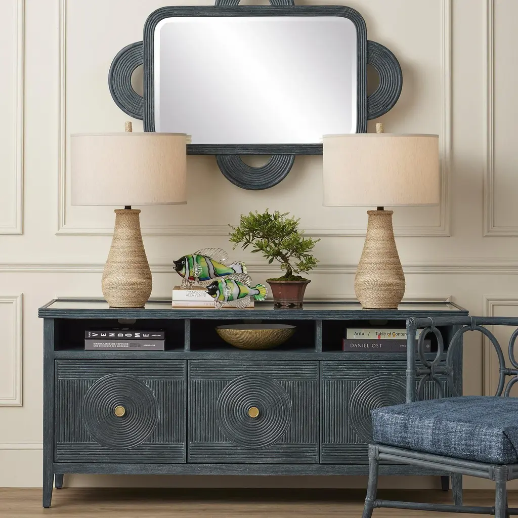 The Joppa Table Lamp has a tear-drop shaped body seamlessly wrapped in natural rope, a painstaking process that takes artisans many hours to achieve. A design detail that illustrates finesse is the narrow finial, also wrapped in rope, that fastens the light natural linen shade to the tan lamp. This is a sturdy rope lamp, as the material underneath that shapes it is terracotta. Ships In 7-10 Business Days This image is for illustrative purposes only. The colors shown are accurate within the constraints of lighting, photography, and the color accuracy of your screen.