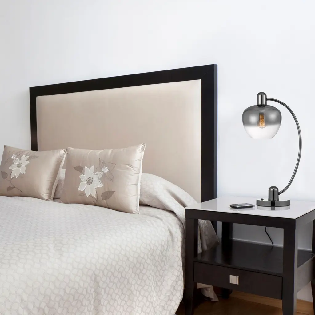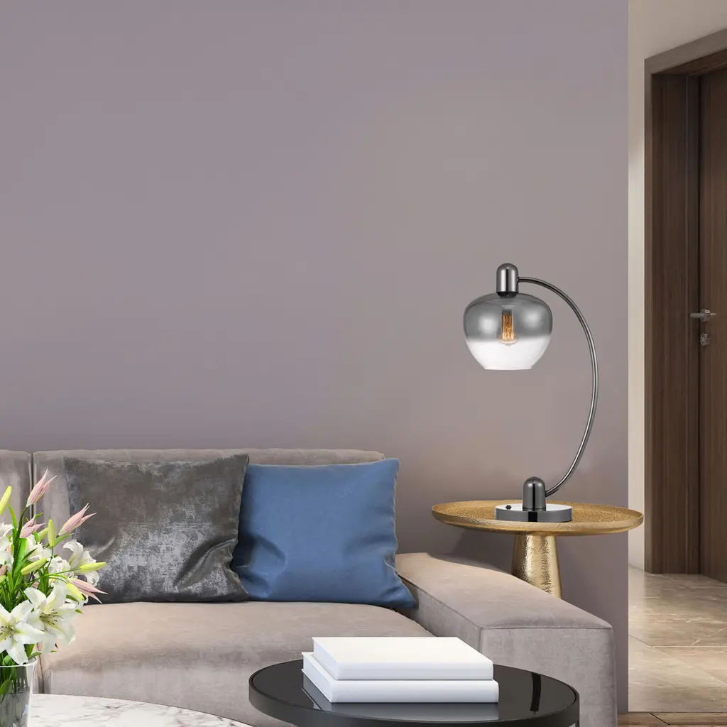 With clean and minimalist lines, the Jorvik table lamp exudes modern appeal and works with a variety of decor styles, from mid-century to industrial. Made from metal with a gunmetal-gray finish and featuring a sleek arc design, its contemporary-geo look is complemented by an ombre smoked-glass shade. Use it to cast a sophisticated glow next to a sofa or chair, or add lowkey elegance to a nightstand beside your bed.