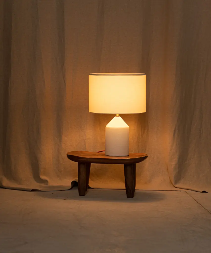 The Josef table merges cylinder and conical shapes that diffuse a soft light. A perfect nightstand table lamp available in various finishes and colors (stone, ceramic, and wood) Each Simone & Marcel lighting fixture is hand-made to order in the designers' studio located in rural Spain. Every product uses only materials and components sourced from local suppliers, all within a short drive of their workshop - an abandoned agricultural warehouse that the couple renovated themselves.