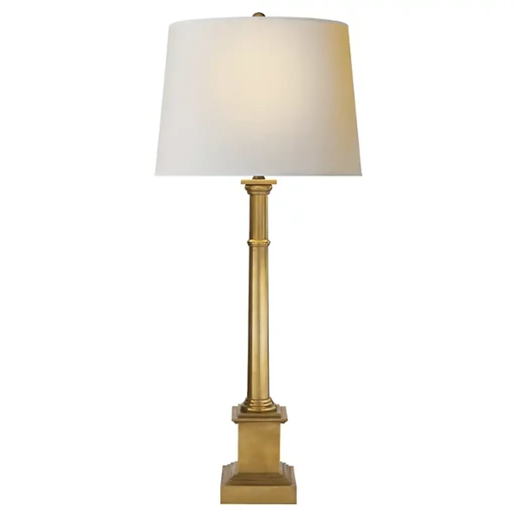 Sophisticated and stylish. The Josephine Table Lamp is a transitional piece of design from Visual Comfort Signature, formerly known as Visual Comfort, by Suzanne Kesler, a creative who melds the classic and continental in her compositions. The column style of the base and stem is reminiscent of the Grecian or Roman aesthetic, while the soft paper lamp shade will diffuse light pleasantly, allowing the remaining casts of illumination to flow out of each opening and highlighting the grooves and lines of the column.