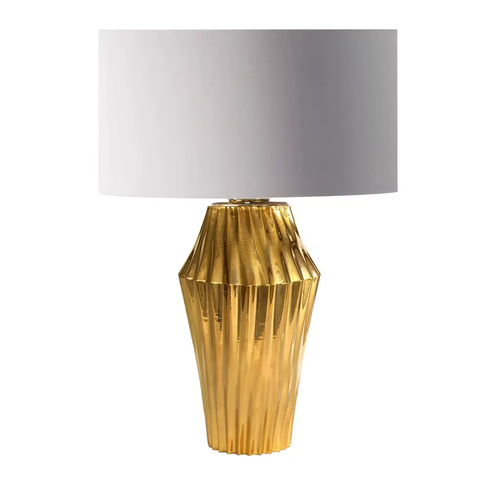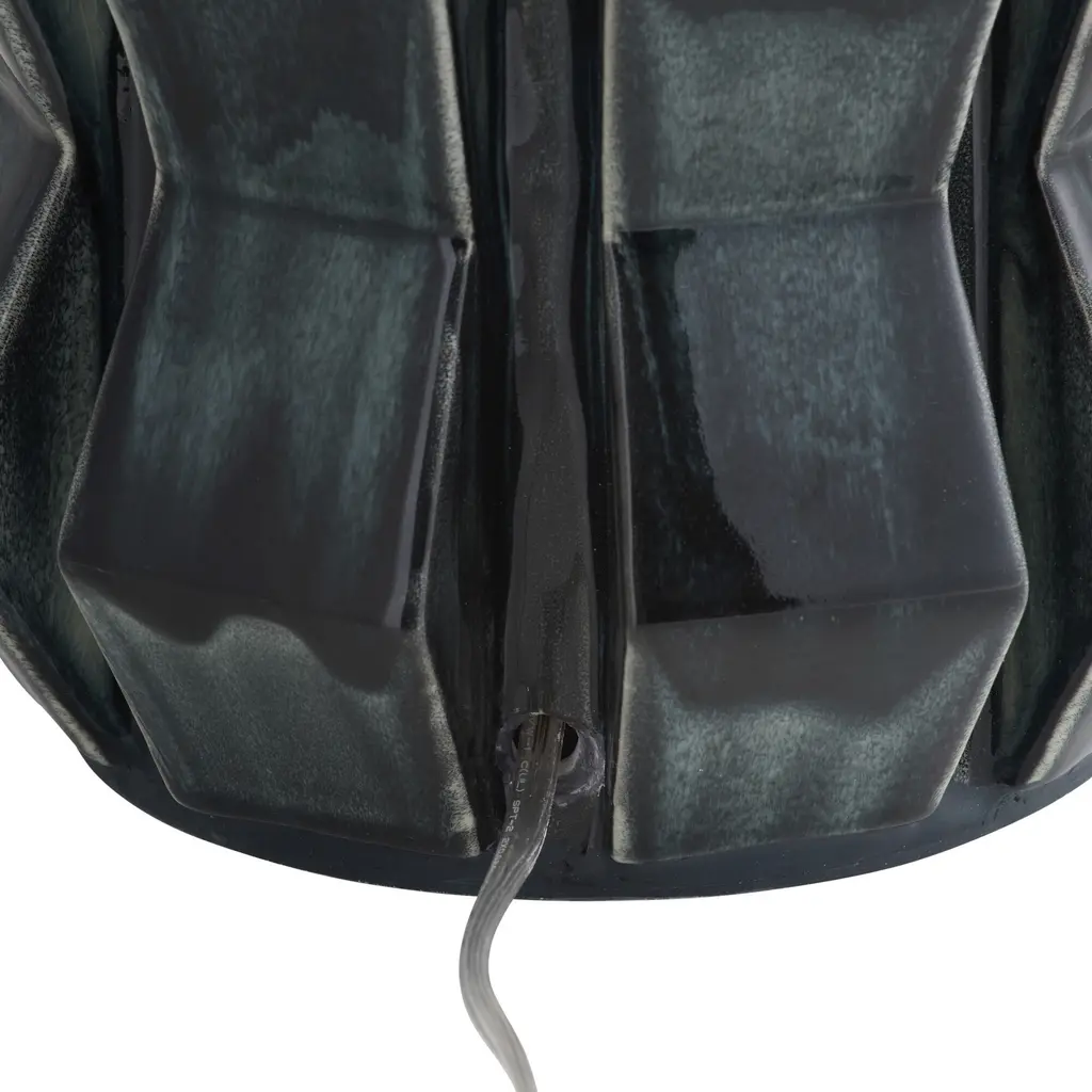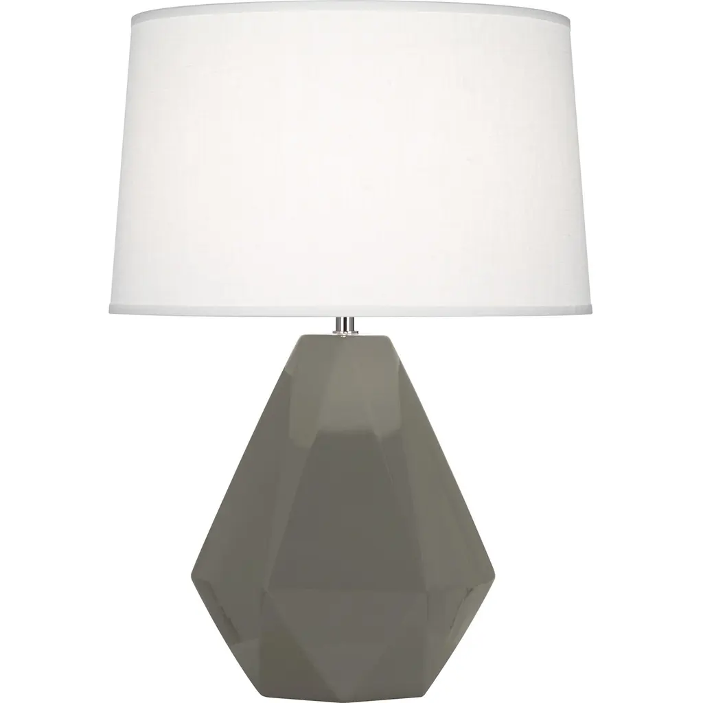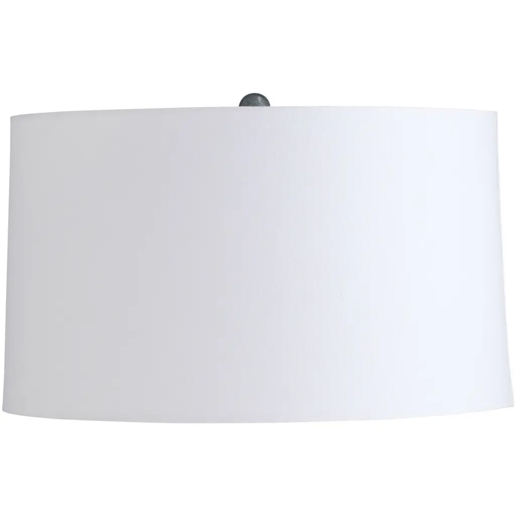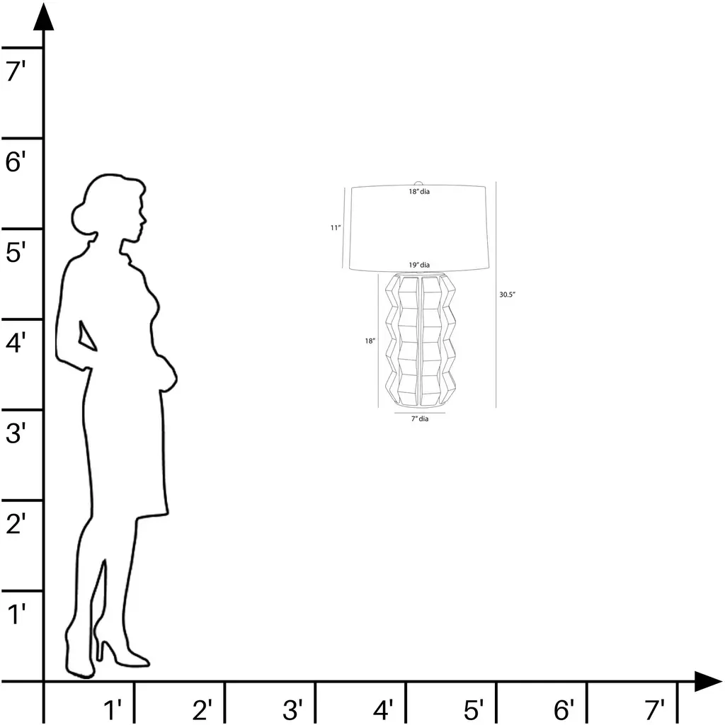 Shaped and glazed to create playful movement, our ceramic Journey is a modern update of a hand-thrown lamp from the mid-century. The zig-zag form is glazed in ocean reactive for subtle gradation and accented with antique brass hardware. Topped with a white linen drum shade and matching ceramic finial. Finish will vary.