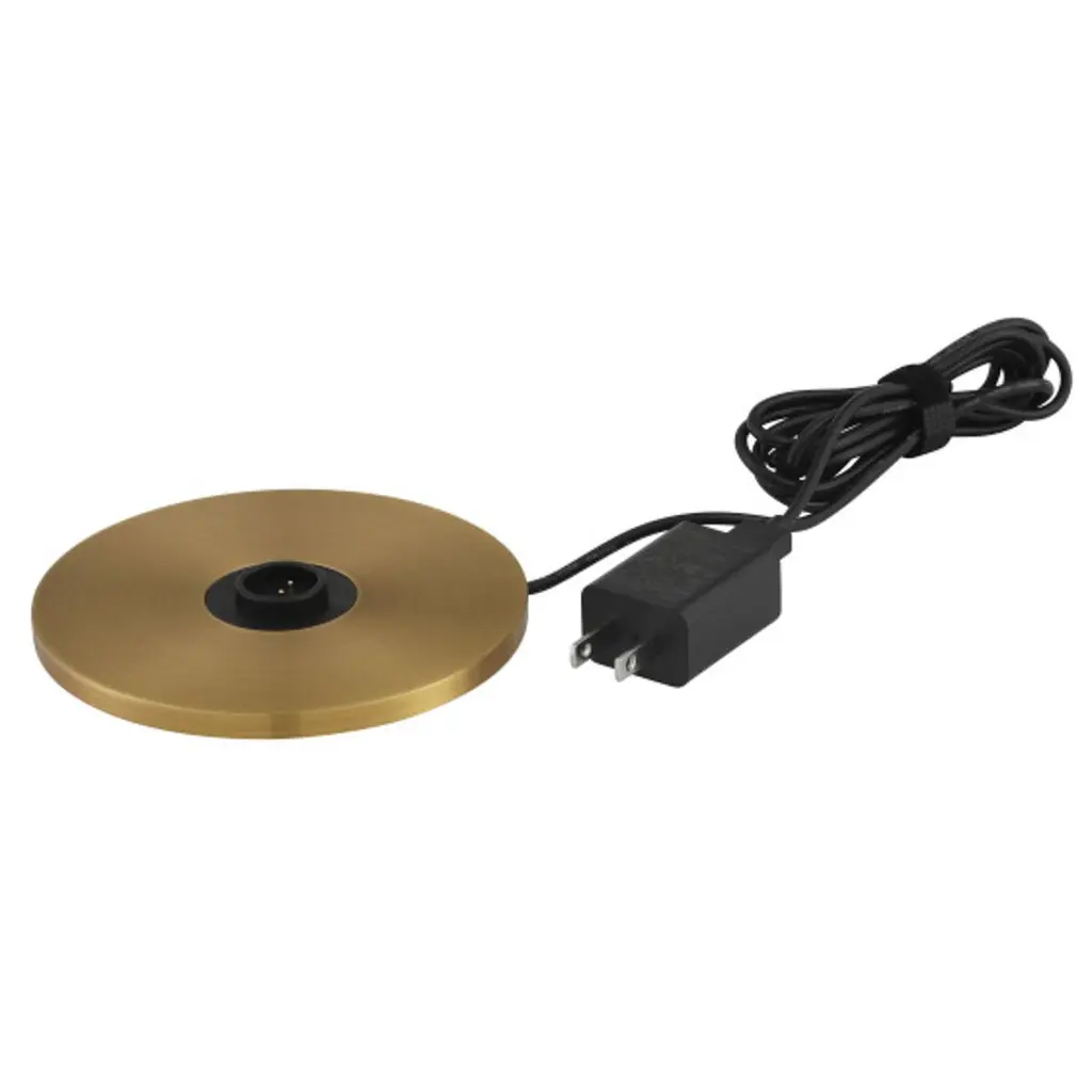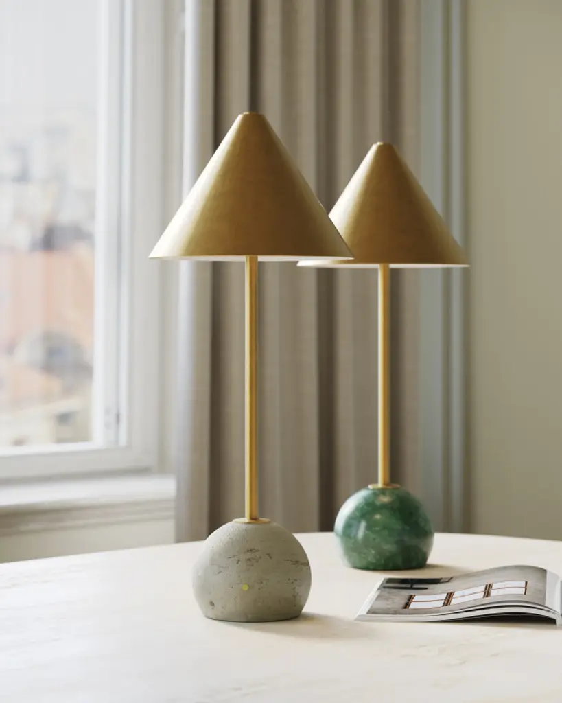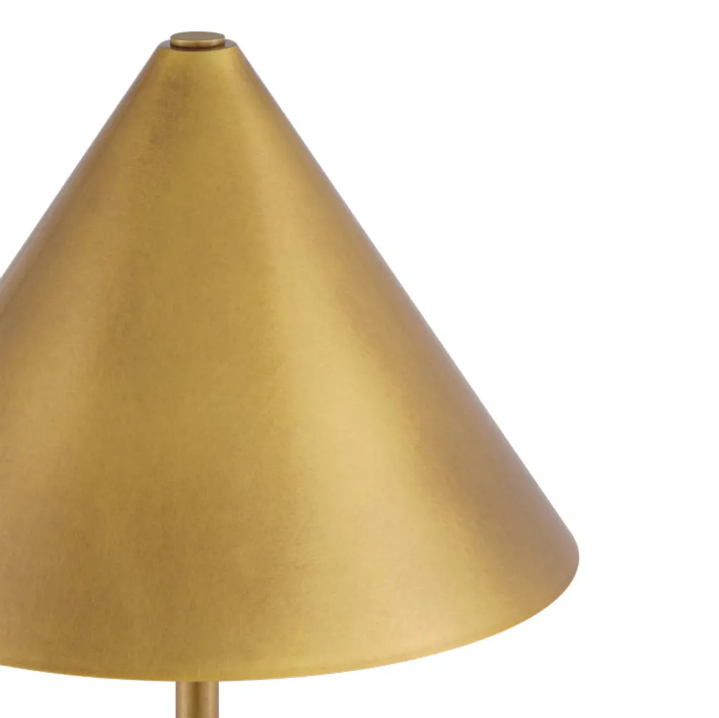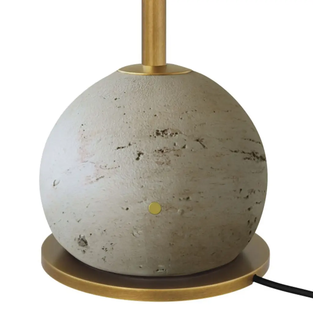 The Journey Cordless Table Lamp combines style and function in a sleek, portable design. A slender stem rises from a marble globe base, complemented by a matching cone-shaped shade that adds a soft, sophisticated gleam. At under 20 inches tall, this compact lamp is easy to move and features an on/off button and a discreet battery-life indicator light on the side of the base, making recharging simple. With its mix of warm metal and natural stone, this cordless piece delivers refined charm wherever it’s placed.