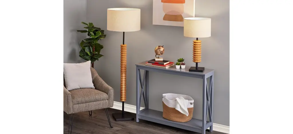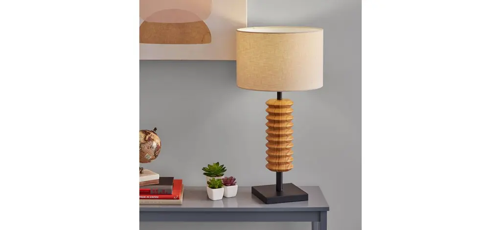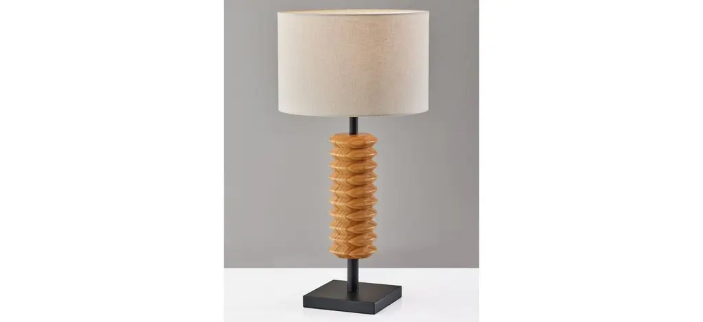 With a bold silhouette and stylish blend of materials, the Judith table lamp is the perfect accompaniment to contemporary or transitional décor. The lamp features a black metal square base with clean lines that supports a matching black metal stem. For a striking look with contrasting colors and materials, a tall natural wood decorative piece adorns the stem. Topping the lamp is a textured cream colored drum shade that softly diffuses the light from a 100W bulb. Operated by a 3-way rotary switch, the brightness can be set to low, medium, or high to always suit your lighting needs. Complete your decorative scheme with the coordinating Judith floor lamp.